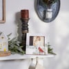 A wooden photo frame from our Christmas Collection displaying a charming winter scene of a cardinal on a branch. Design is replicated from original artwork hand painted in a delicate watercolor style. Seasonal photo frame features coordinating red color on sides and back. Frame fits a 6 inch by 4 inch photo and can easily be replaced via clips on back. Our Winter Cardinal photo frame is easy to display using metal easel on the back to free-stand. A charming winter-themed gift perfect for displaying favorite memories as seasonal home décor.