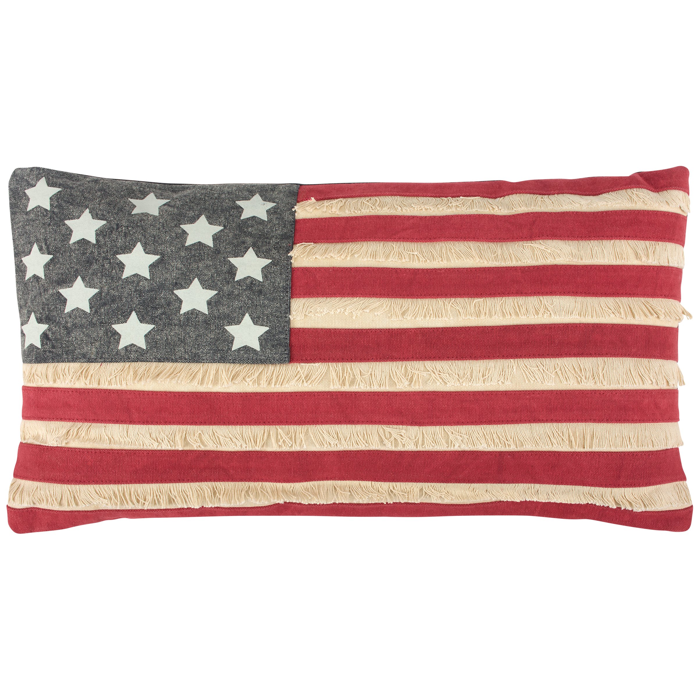 An unconventional take on the American flag, this distressed canvas pillow from our Patriotic Collection features a tan, cream, and navy palette with block print star designs, canvas stripes, and fringe details throughout. Includes a zipper to easily remove and clean cover. The American Flag pillow complements well with other pieces in collection.
