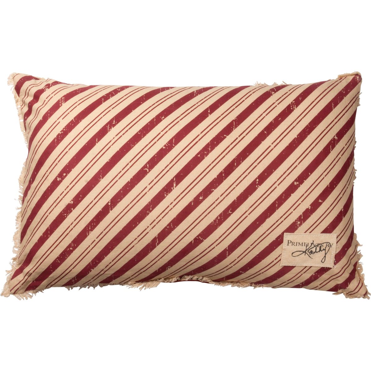 A double-sided canvas pillow featuring an appliqued "Believe" sentiment, reverse diagonal print designs, and fringe trim. Polyester filling. Includes a zipper to easily remove and clean cover. Shipped vacuum-sealed for protection and storage.