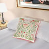 A cotton pillow from our Folk Art Collection displaying a folk art inspired pink blossom pattern with embroidered details and cotton string accents for added dimension. Floral pillow features coordinating pink color on the back and pink piping along the edge. Folk art pillow includes a zipper to easily remove and clean machine-washable pillow cover. Our Blossom Folk Art pillow contains polyester filling and is shipped vacuum-sealed for protection and storage. A floral-themed everyday home accent perfect for adding style to any room.