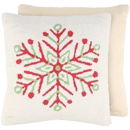A cotton pillow from our Christmas Collection displaying a bright pastel holiday design of a snowflake with raised embroidered cotton throughout the front for added texture. Our Bright Snowflake pillow features a zipper to easily remove and clean machine-washable pillow cover. Seasonal pillow contains polyester filling and is shipped vacuum-sealed for protection and storage. A pastel Christmas home accent perfect for adding retro seasonal style to any room.