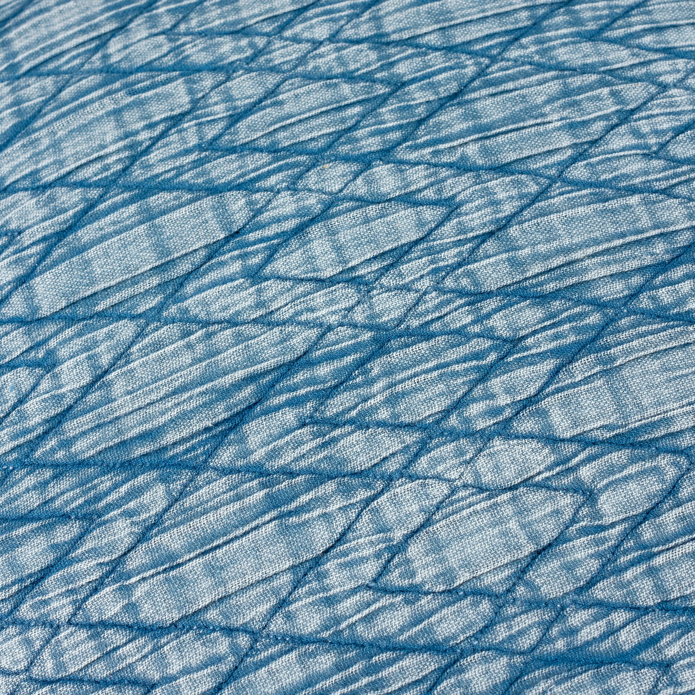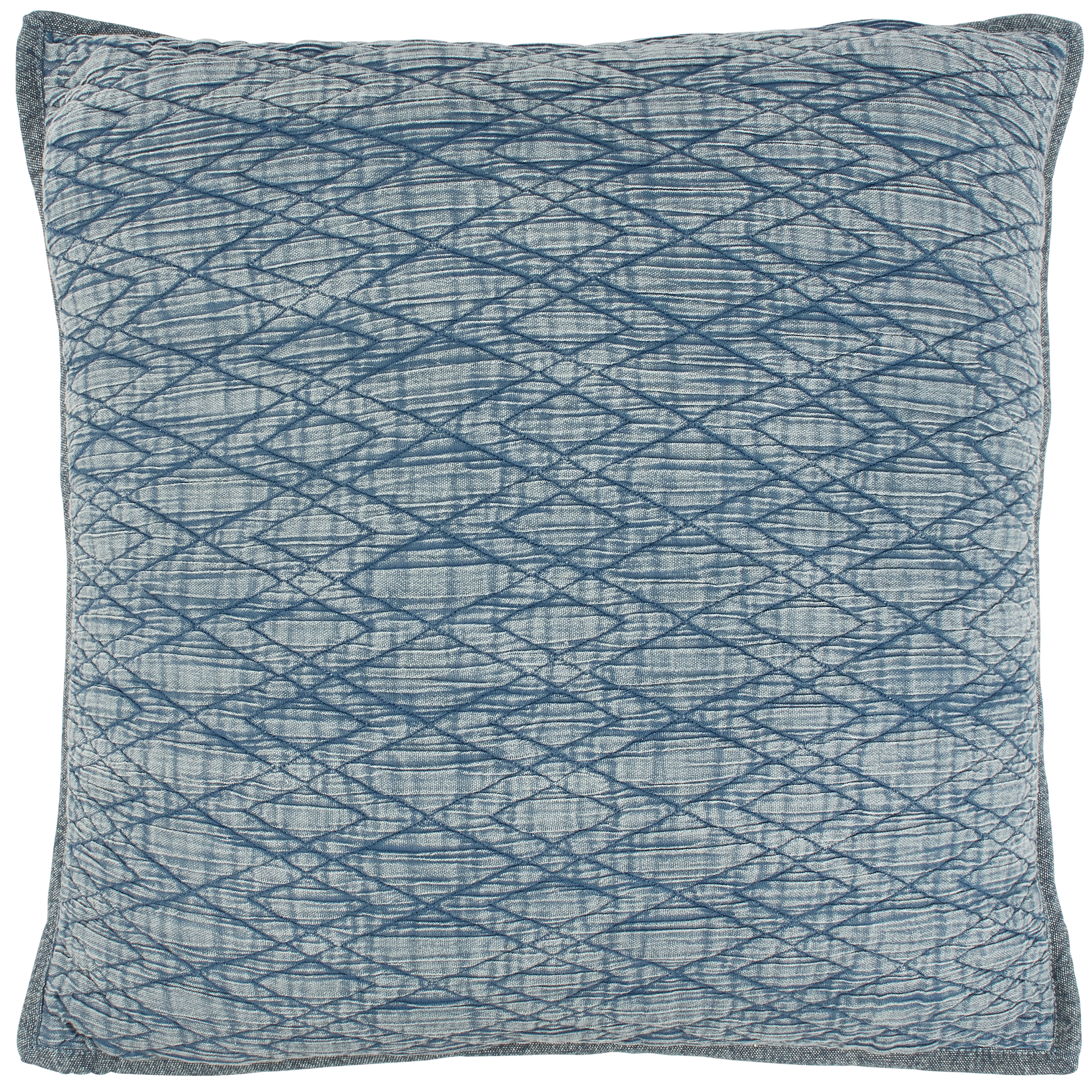 A decorative cotton throw pillow from our Home Collection displaying a quilted fabric design in a vintage blue color palette with a diamond pattern stitched throughout and stonewashed blue cotton on the back. Our Diamond Blue pillow includes a zipper to easily remove and clean machine-washable pillow cover. Quilted pillow contains polyester filling and is shipped vacuum-sealed for protection and storage. An everyday home accent that adds vintage style to any room.