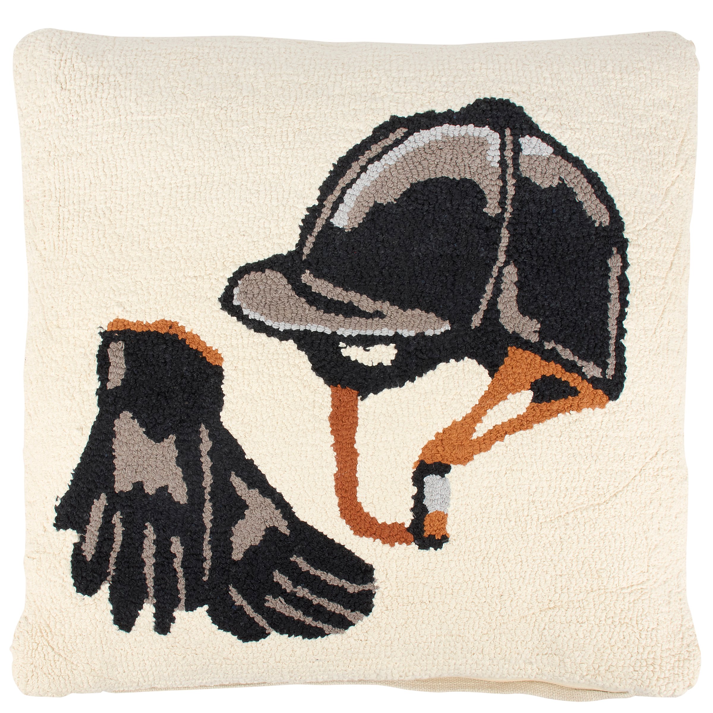 A decorative pillow from our Preppy Heritage Collection featuring a design of equestrian gear made with raised embroidered cotton for added texture. Our Equestrian Gear pillow features a zipper to easily remove and clean machine-washable pillow cover. Equestrian pillow contains polyester filling and is shipped vacuum-sealed for protection and storage. A horse themed home accent perfect for adding vintage style to any room.