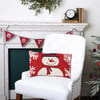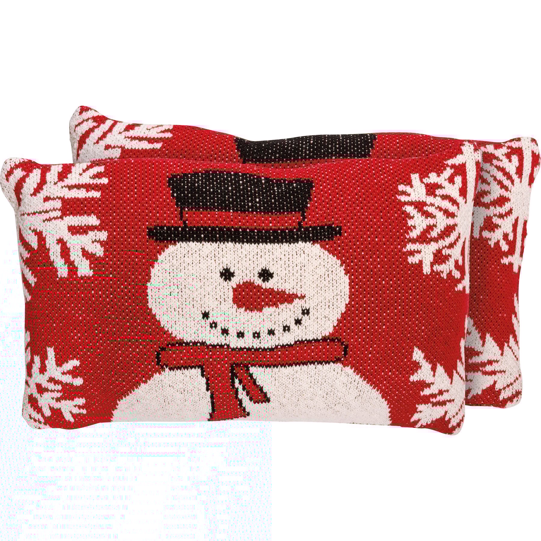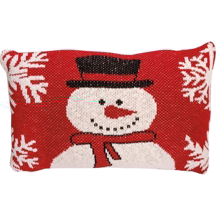 A machine-knitted cotton pillow featuring a snowman and snowflake designs. Polyester filling. Includes a zipper to easily remove and clean cover. Our Frosty The Snowman pillow is shipped vacuum-sealed for protection and storage.