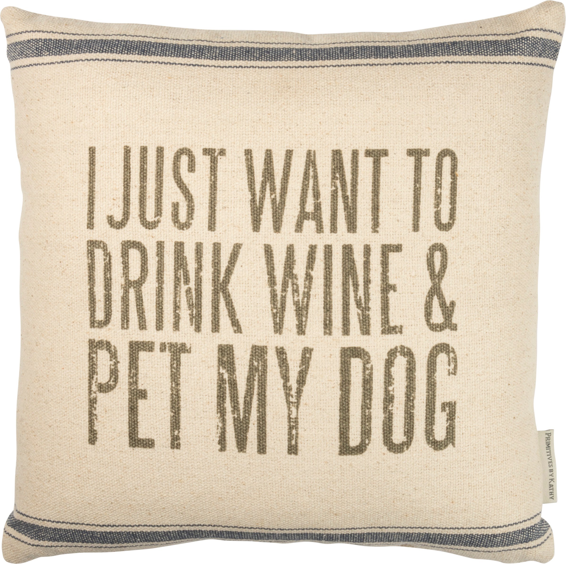 I Just Want To Drink Wine & Pet My Dog Pillow