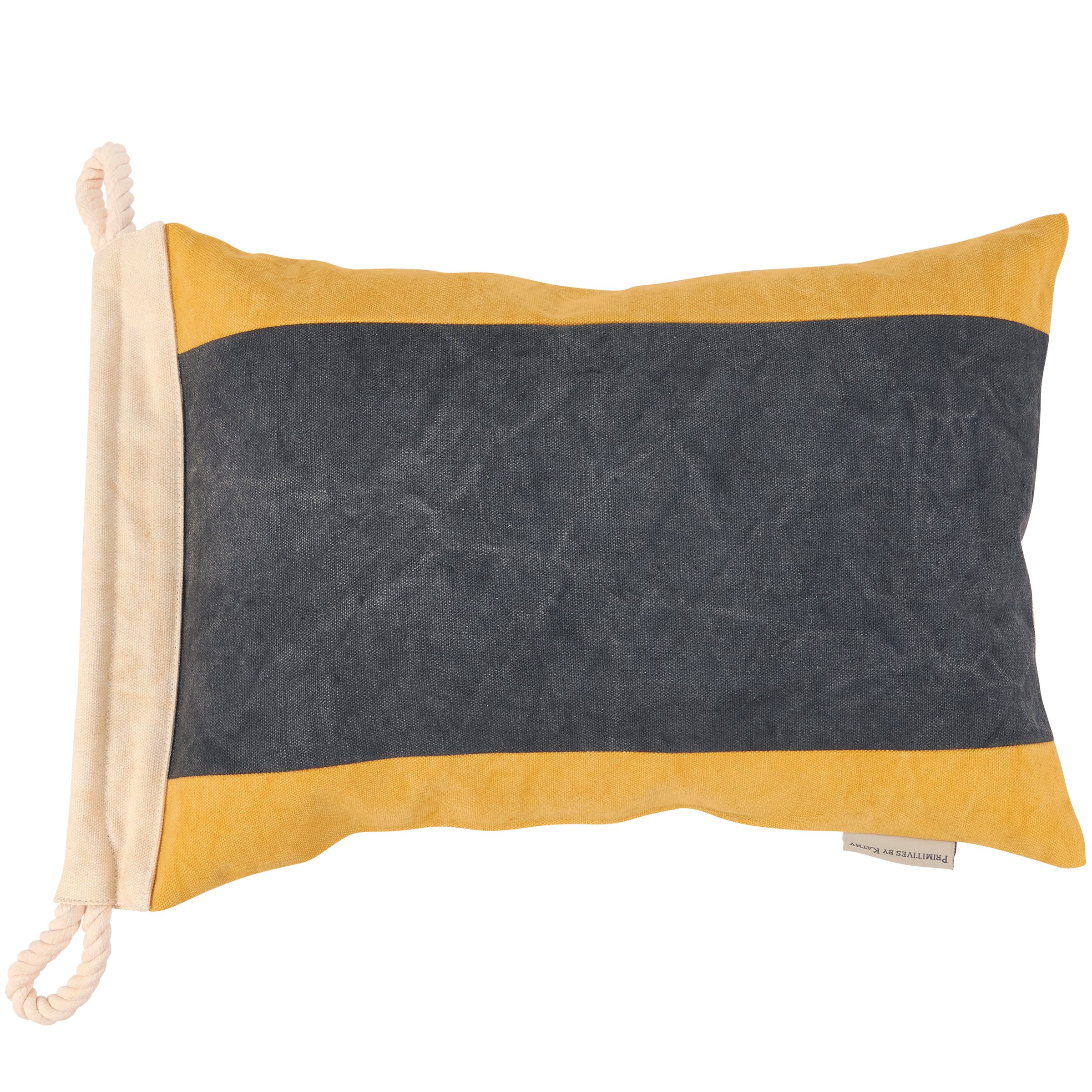 A decorative pillow from our Beach Collection displaying a vintage nautical flag inspired design of the "Keep Clear" flag made with durable canvas. Nautical flag pillow features rope accents on two corners giving the appearance of a flag on display. Canvas pillow includes a zipper to easily remove and clean machine-washable pillow cover. Our Nautical Keep Clear pillow contains polyester filling and is shipped vacuum-sealed for protection and storage. A nautical home accent perfect for adding vintage style to any room.