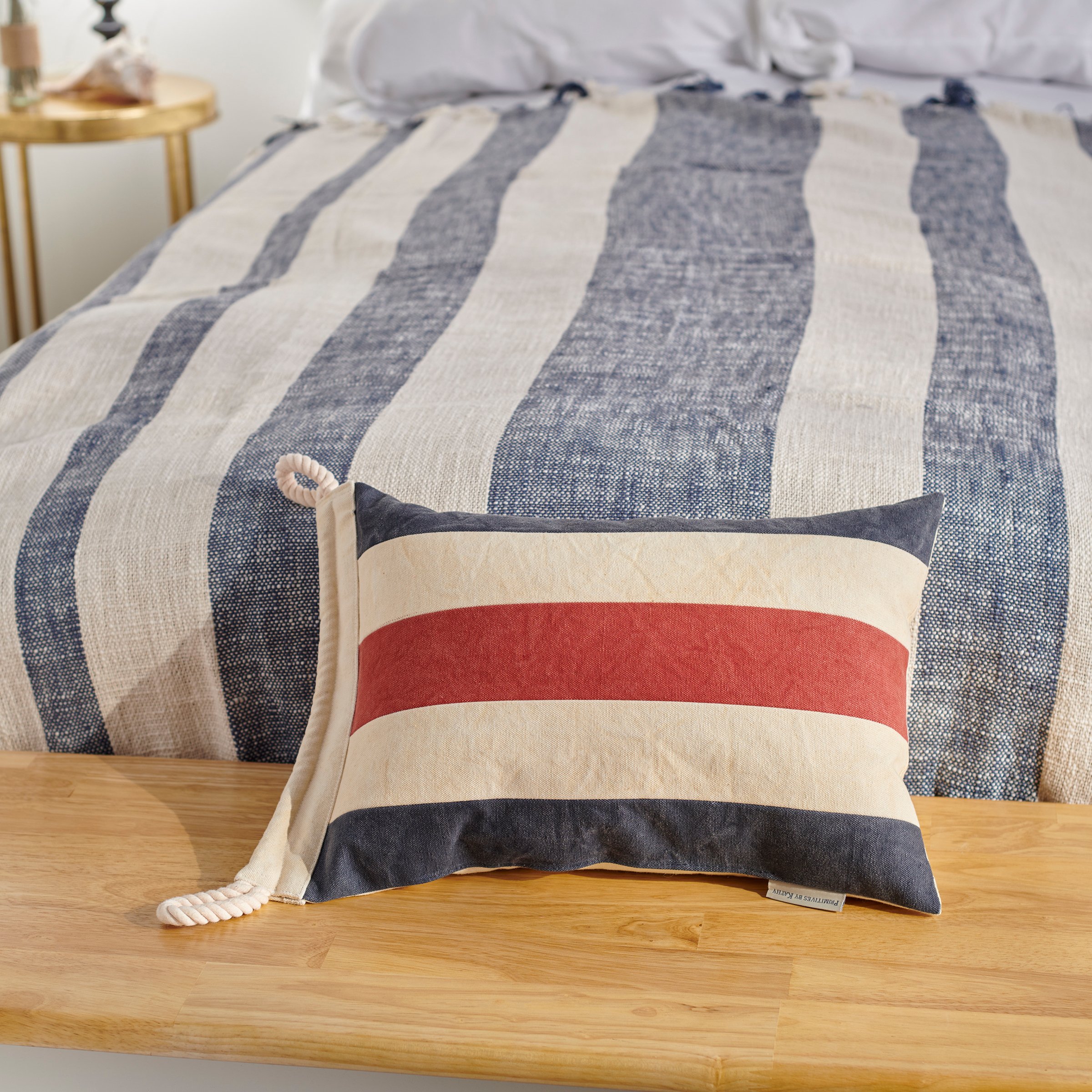 A decorative pillow from our Beach Collection displaying a vintage nautical flag inspired design of the "Yes" flag made with durable canvas. Nautical flag pillow features rope accents on two corners giving the appearance of a flag on display. Canvas pillow includes a zipper to easily remove and clean machine-washable pillow cover. Our Nautical Yes pillow contains polyester filling and is shipped vacuum-sealed for protection and storage. A nautical home accent perfect for adding vintage style to any room.