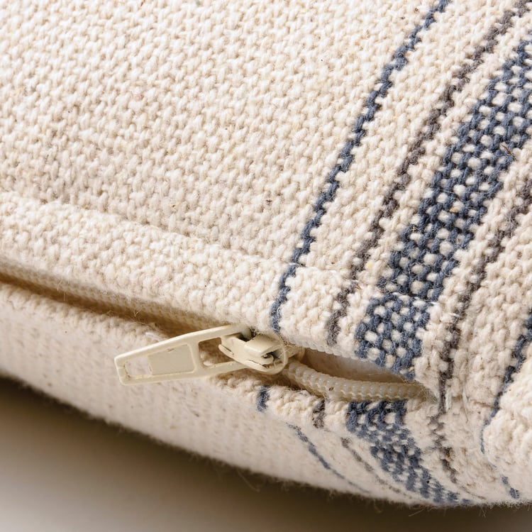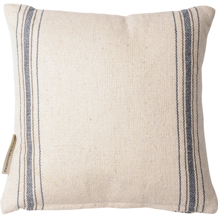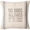 A decorative cotton throw pillow displaying woven rustic blue stripes with a distressed dog inspired sentiment that reads "No Dogs Allowed On The Couch - LOL, Just Kidding." Our No Dogs Allowed pillow includes a zipper to easily remove and clean machine-washable pillow cover. Rustic pillow contains polyester filling and is shipped vacuum-sealed for protection and storage. A rustic pet-themed home accent perfect for adding style to any room.