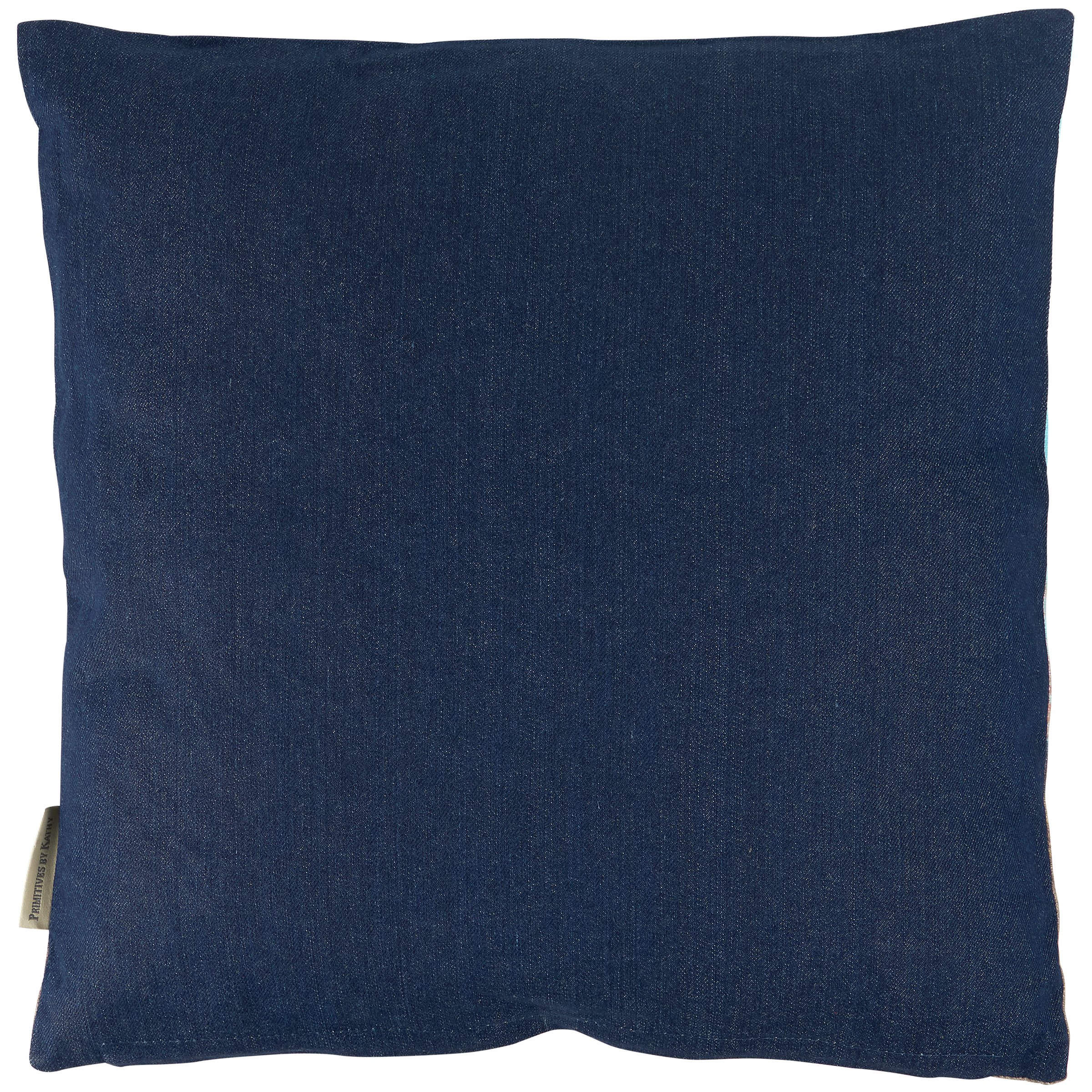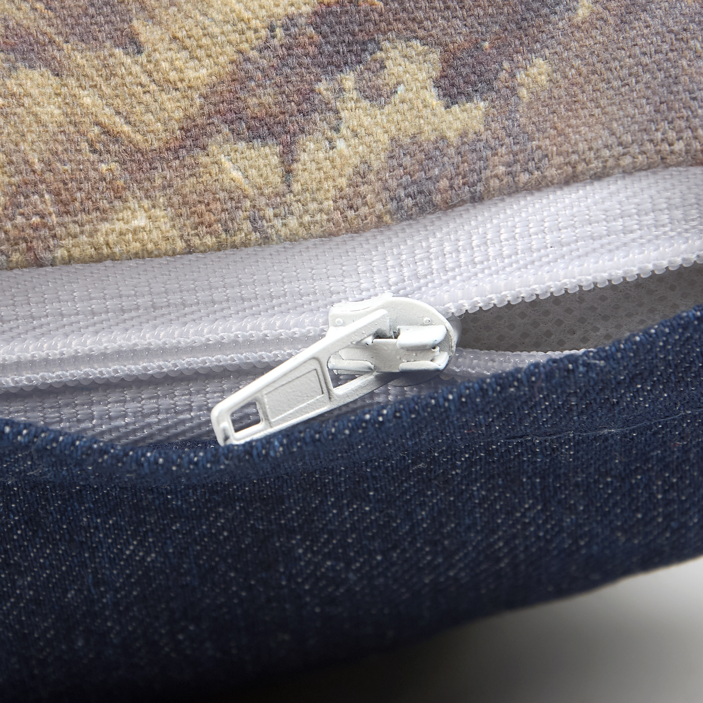 A cotton pillow from our Western Collection displaying a hand painted scene of a grazing horse wearing a saddle. Horse pillow features coordinating blue color cotton on the back. Western pillow includes a zipper to easily remove and clean machine-washable pillow cover. Our Ready To Ride pillow contains polyester filling and is shipped vacuum-sealed for protection and storage. A western home accent perfect for adding style to any room.