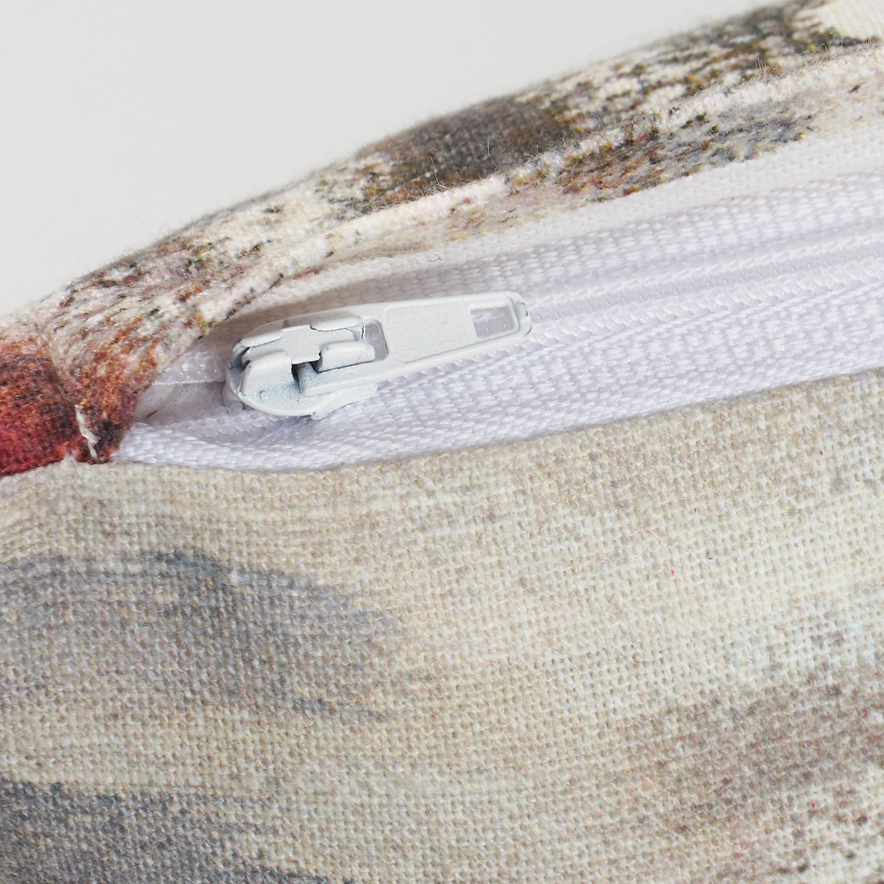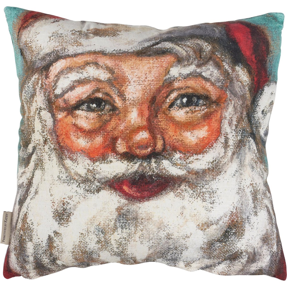A cotton pillow from our Christmas Collection displaying a hand painted snowy scene of Santa in a sleigh on one side and a Santa face on the other. Designs are replicated from original artwork painted onto burlap canvas, giving the art a unique depth and texture. Pillow also features a zipper to easily remove and clean cover. Our Santa's Sleigh pillow contains polyester filling and is shipped vacuum-sealed for protection and storage. A charming seasonal home accent perfect for any room.