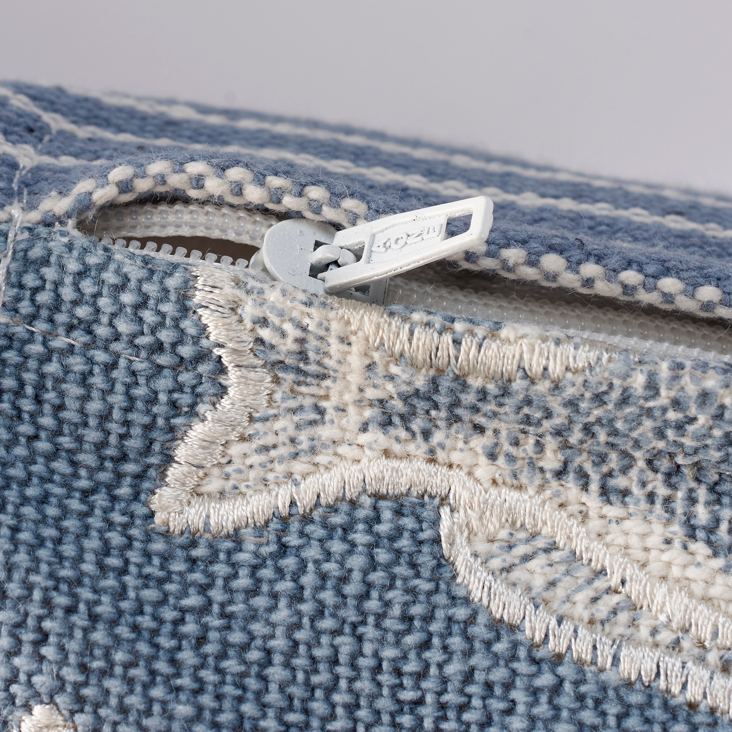 A cotton pillow from our Lake & Cabin Collection displaying a rustic school of fish pattern in a lake blue color palette with embroidered details. Fish pillow feature coordinating blue stripe pattern on the back. Rustic pillow includes a zipper to easily remove and clean machine-washable pillow cover. Our School Of Fish pillow contains polyester filling and is shipped vacuum-sealed for protection and storage. A rustic home accent perfect for adding style to any cabin or RV.