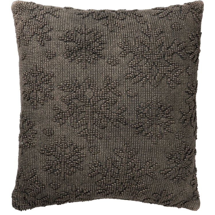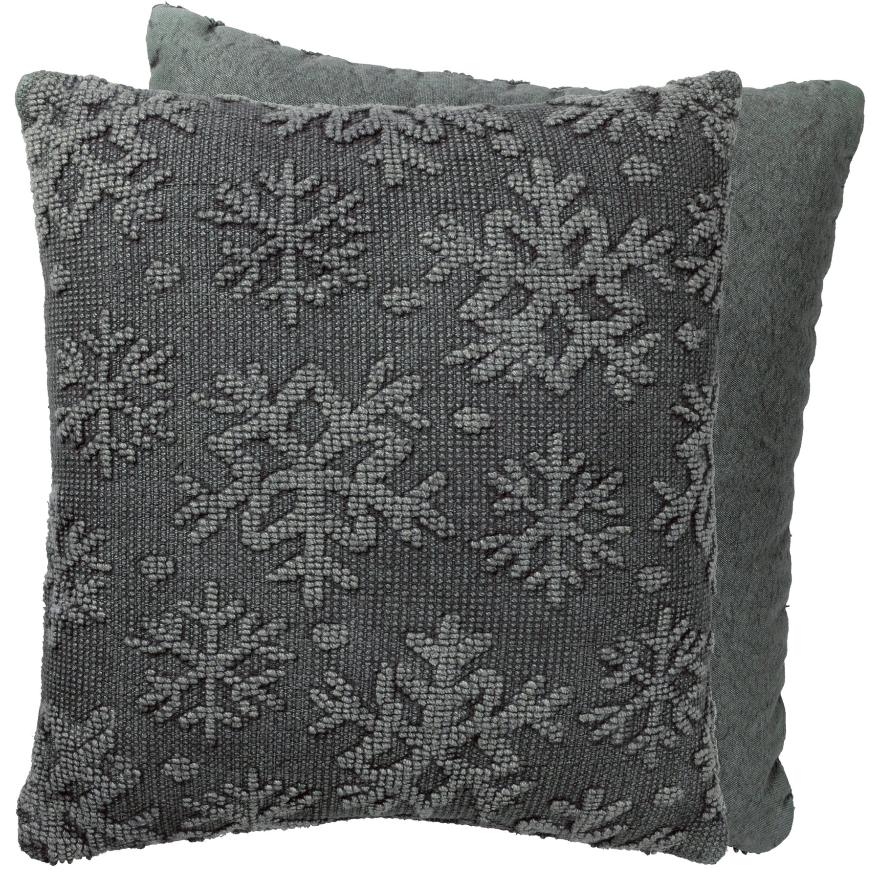 A knobby cotton and canvas snowflake pillow with textured designs from our festive Winter Collection. Polyester filling. Shipped vacuum-sealed for protection and storage. Includes a zipper to easily remove and clean cover.