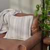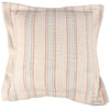 A decorative cotton throw pillow from our Farmhouse Collection displaying coordinating colored stripes woven throughout. Pillow features coordinating blue color on the back. Our Ticking Stripe pillow includes a zipper to easily remove and clean machine-washable pillow cover. Contains polyester filling and is shipped vacuum-sealed for protection and storage. A rustic everyday home accent perfect for adding style to any room.