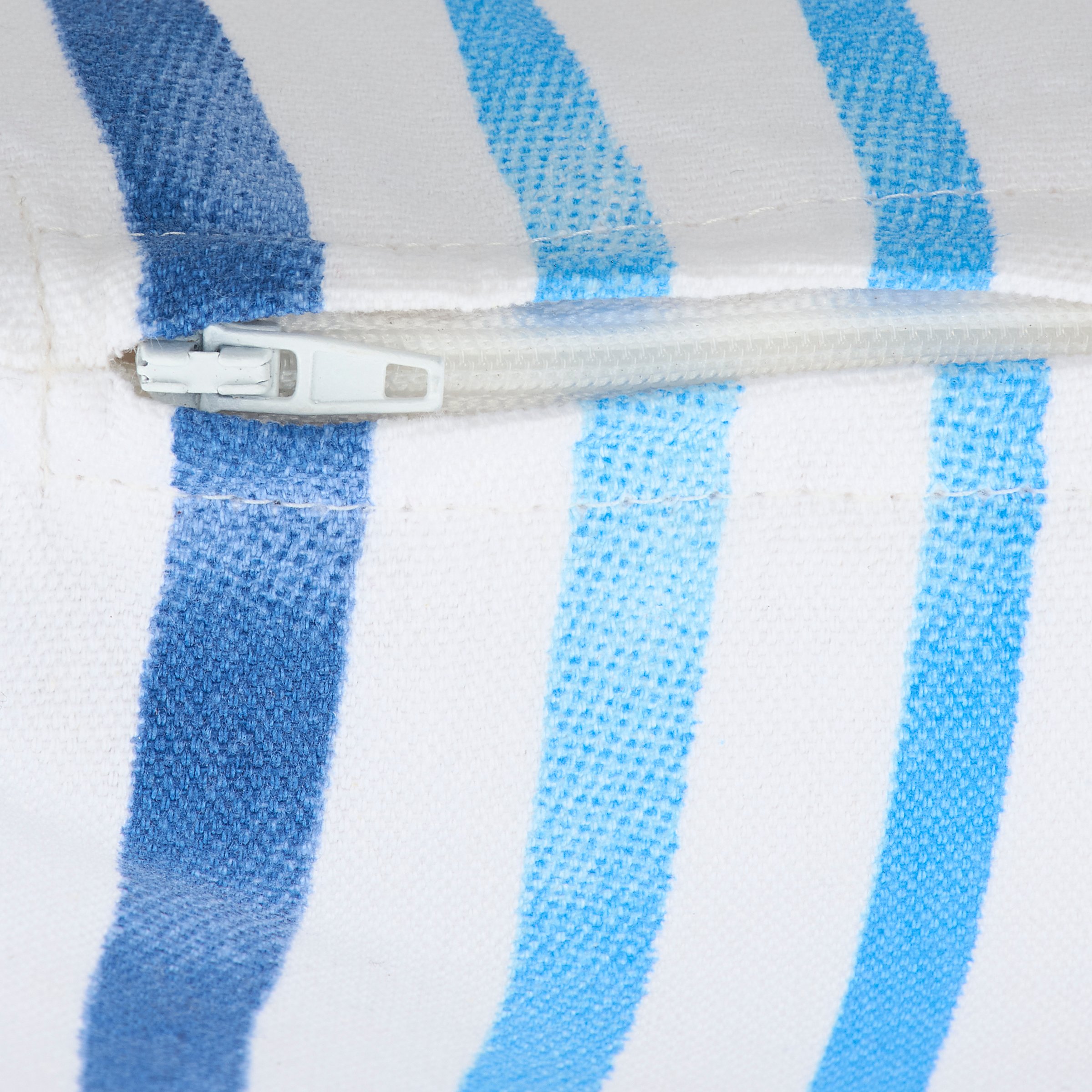 A decorative pillow from our Beach Collection featuring a double-sided design of beach blue stripes in a watercolor style. Our Watercolor Stripe pillow features a zipper to easily remove and clean machine-washable pillow cover. Beach pillow contains polyester filling and is shipped vacuum-sealed for protection and storage. A fun home accent perfect for adding beach style to any room.