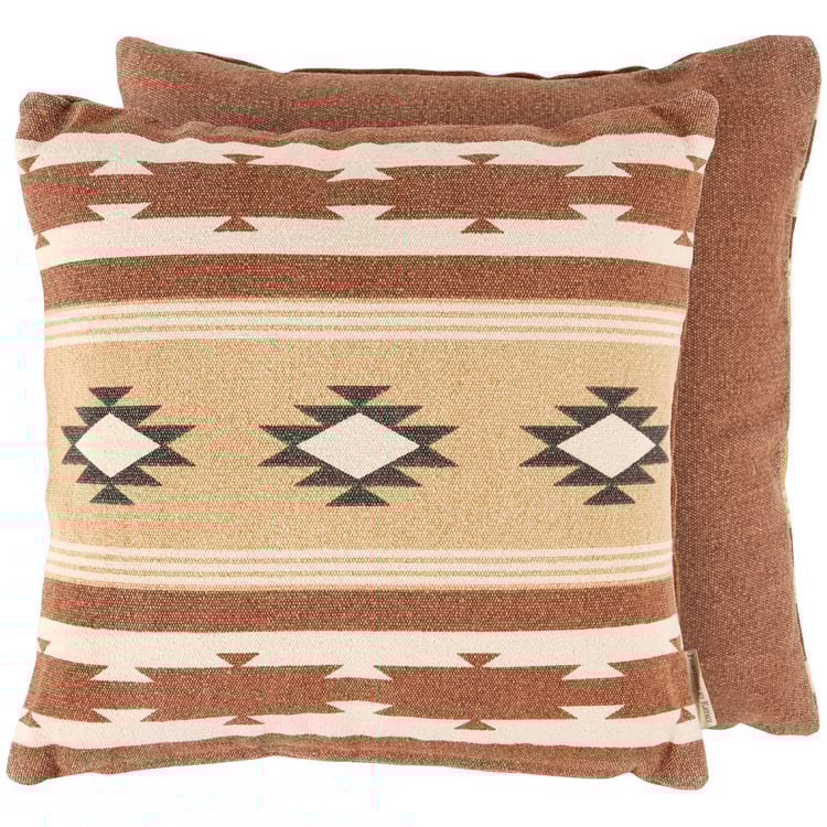 A decorative cotton pillow from our Western Collection displaying a western inspired diamond pattern on the front. Pillow features a coordinating brown color on the back. Our Western Diamond pillow includes a zipper to easily remove and clean machine-washable pillow cover. Western pillow contains polyester filling and is shipped vacuum-sealed for protection and storage. A western home accent that adds style to any room.