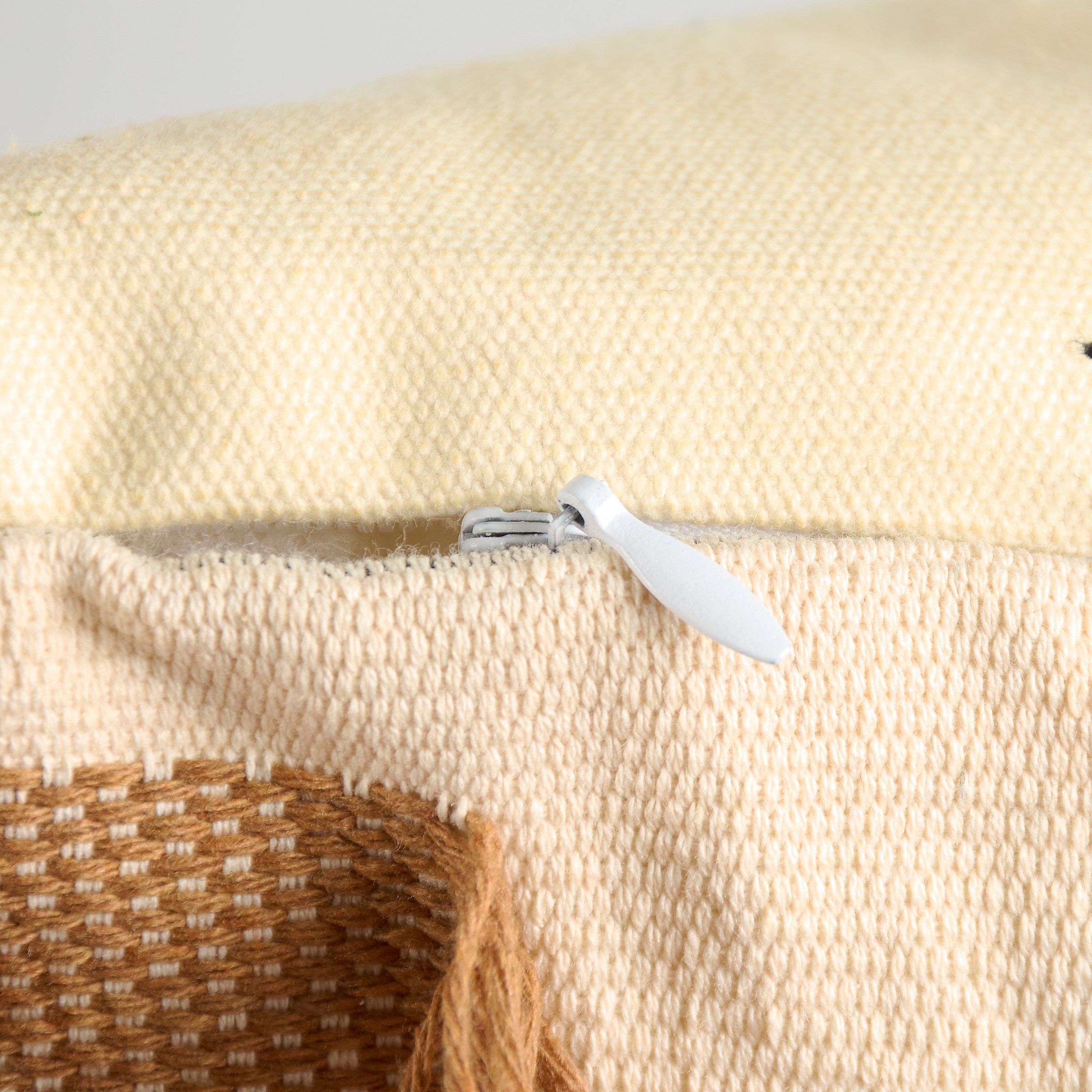 A decorative cotton pillow from our Western Collection displaying a western inspired design with fringe stitched details and coordinating color on the back. Our Western Fringe pillow includes a zipper to easily remove and clean machine-washable pillow cover. Western pillow contains polyester filling and is shipped vacuum-sealed for protection and storage. A western home accent that adds style to any room.