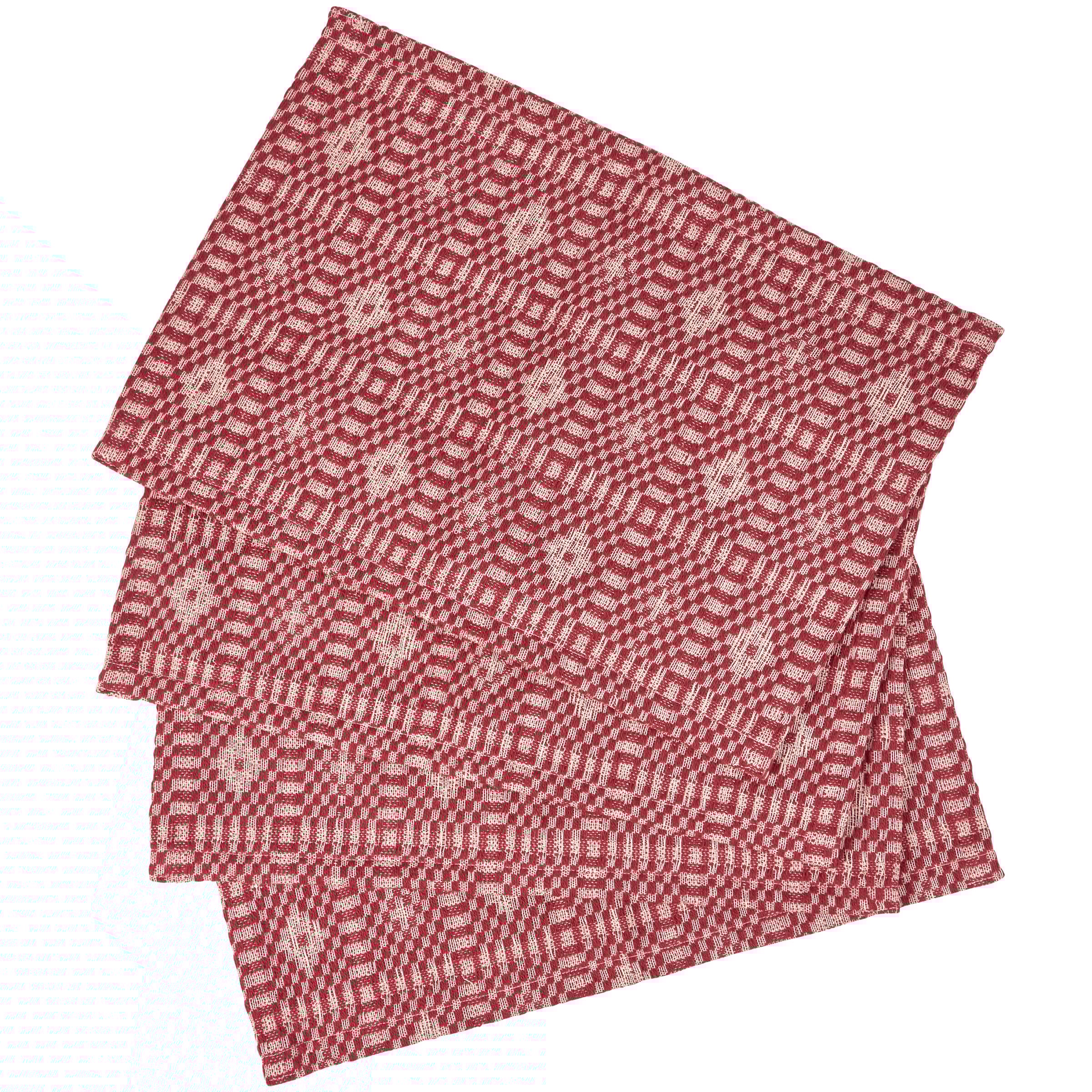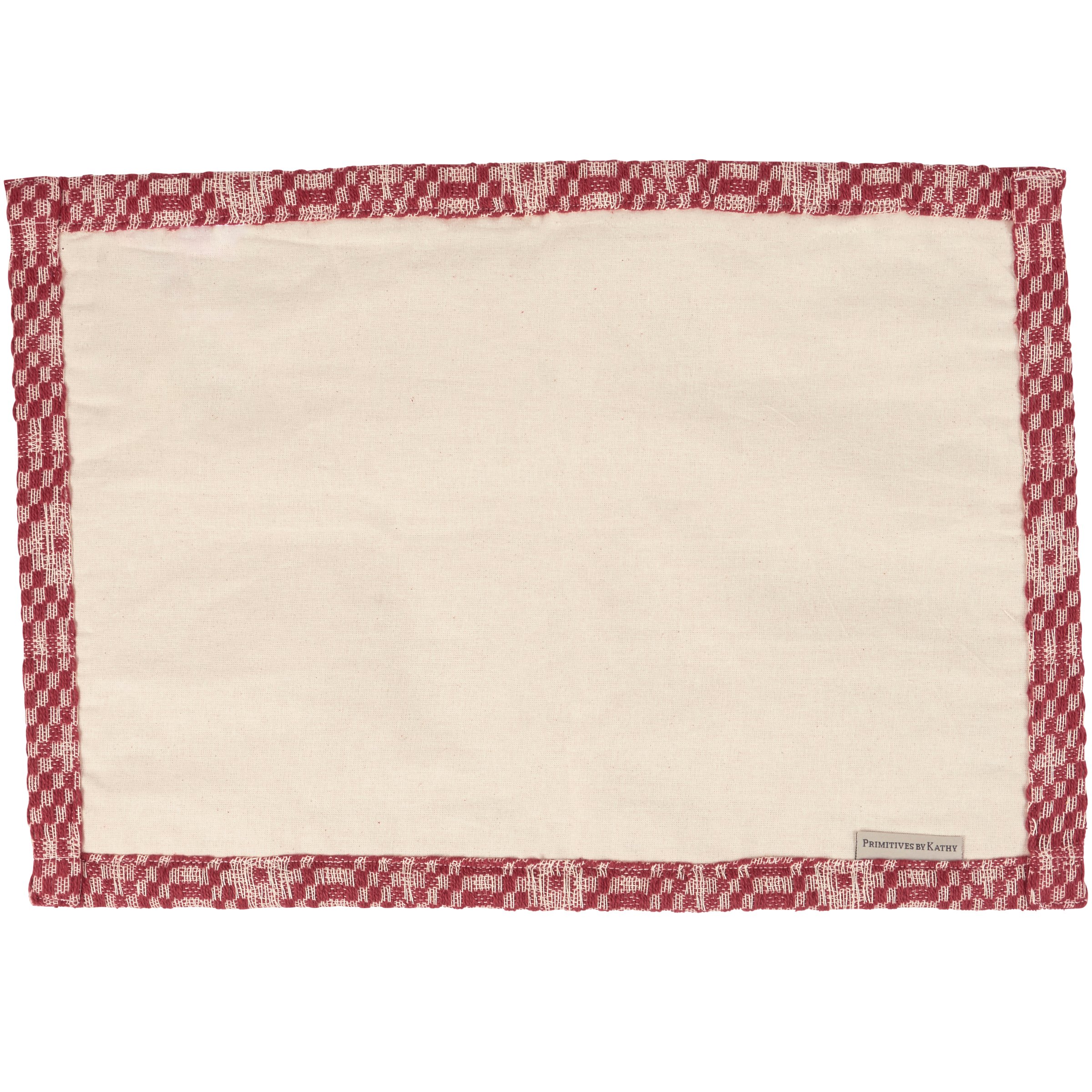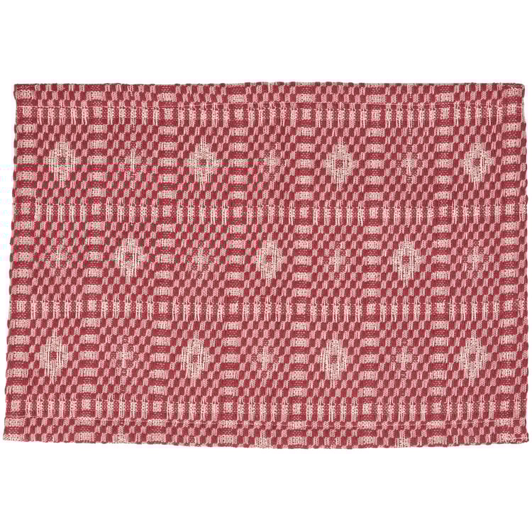 A set of 4 cotton placemats from our Primitive Collection displaying a diamonds pattern in red and cream. Our Red Diamonds placemat set is conveniently machine-washable for easy cleaning. A rustic set of tabletop accessories perfect for customizing everyday place settings.
