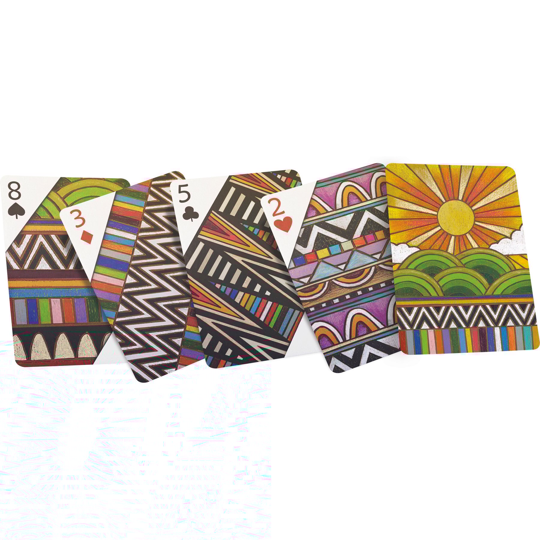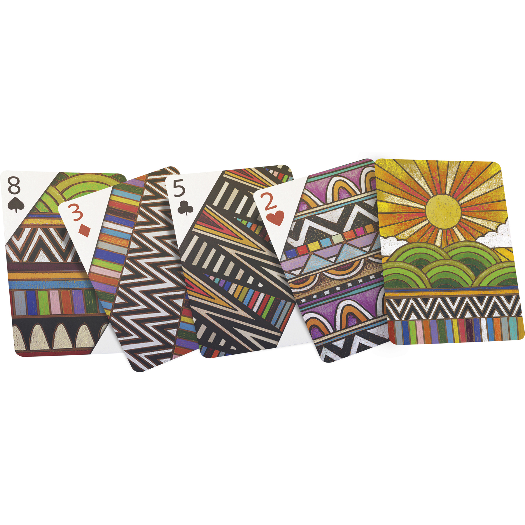 A 54-card playing deck featuring a variety of beautiful seasonal wood burned designs on both sides. Cards are packaged in a protective acrylic case.