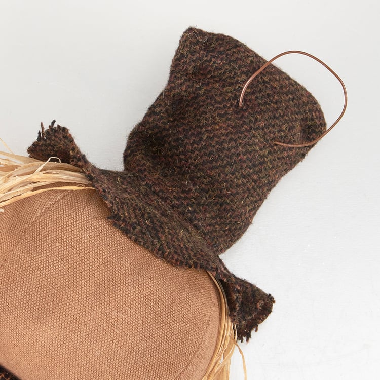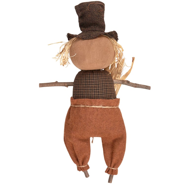 A primitive doll from our Fall & Harvest Collection displaying a scarecrow inspired outfit with a distressed sign that reads "Hello Fall." Seasonal doll is recreated from an original handmade piece using natural wood, fabric, and natural foliage details. Our Happy Henry doll is designed to free-stand in a sitting position on any flat surface for display. Contains small parts; this is not a toy. A rustic seasonal home accent to display alone or as a collection with other seasonal dolls.'