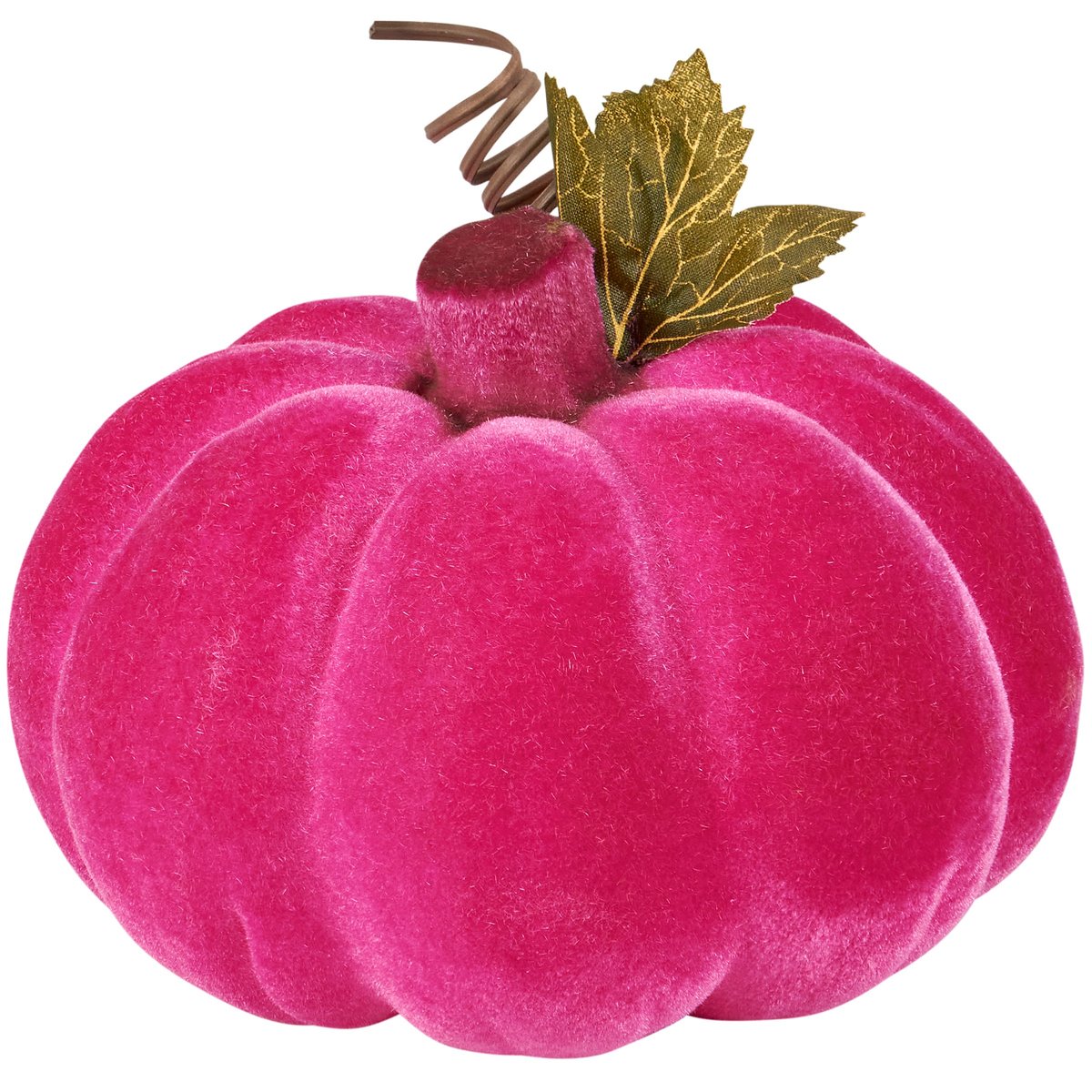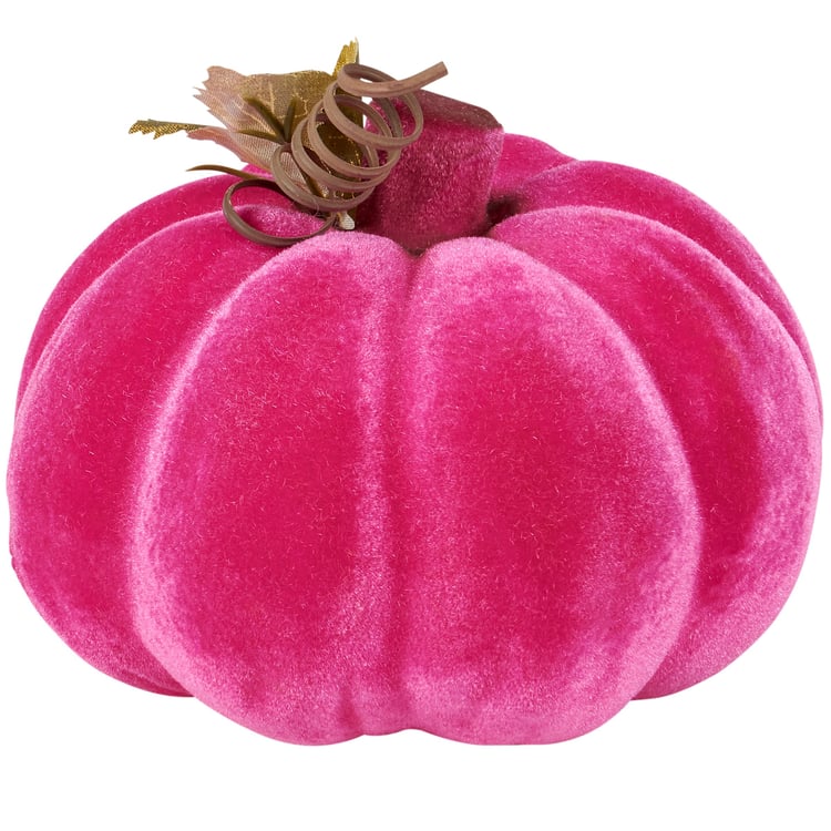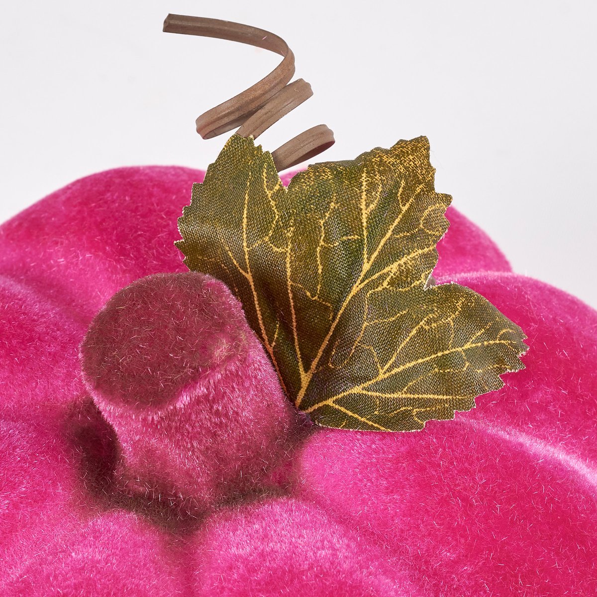 A decorative pumpkin from our Halloween Collection featuring a neon pink flocked finish and stem with faux greenery accent for added interest. Our Flocked Neon Pink pumpkin is designed to free-stand on any flat surface. Place in a display to add a fun touch of Halloween that looks great in blacklight or with other decorative pumpkins as a collection. A fun neon home accent with a variety of seasonal display options.