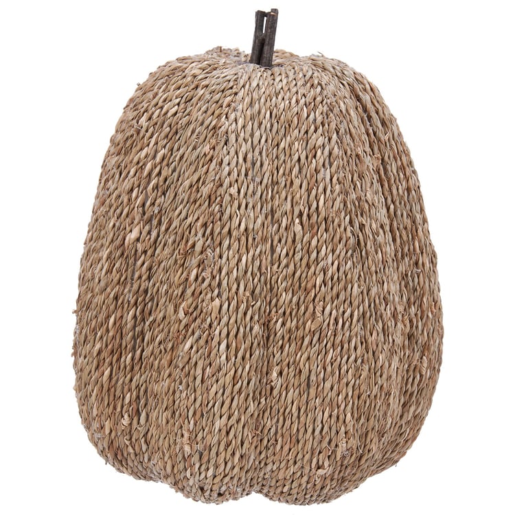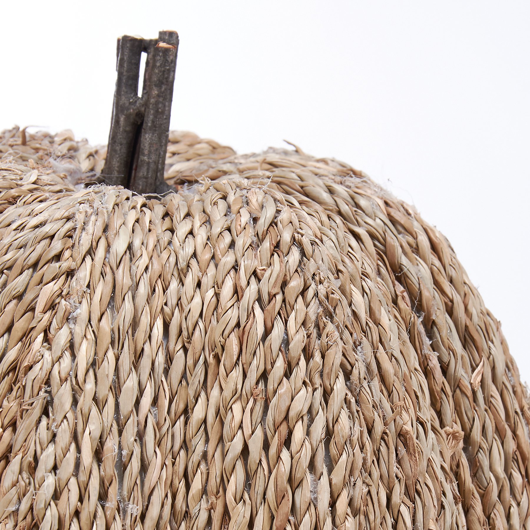 A decorative pumpkin from our Fall & Harvest Collection featuring a woven jute design for a cozy aesthetic with a bundled stick stem. Our Jute pumpkin is designed to free-stand on any flat surface. Place in a display to add a touch of autumn or display with other decorative pumpkins as a collection. A cozy seasonal home accent with a variety of display options.