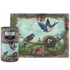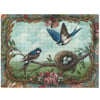 A 500 piece puzzle from our Art Nouveau Collection displaying an art nouveau inspired scene of blue swallows with a floral border. Nouveau design is replicated from original artwork painted onto burlap canvas, giving the art a unique depth and texture. Puzzle pieces are packaged in a resealable plastic bag and enclosed in a cylindrical box with the design displayed around outside and a descriptive "Painted Botanical Puzzle" sentiment on lid. Our Blue Swallows 500 piece puzzle includes a printout of full puzzle image for reference. Contains small parts; this is not a toy. A vintage-themed puzzle great for gifting.