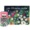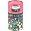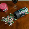 A 1,000 piece puzzle from our Inspiration & Blooms Collection displaying a vibrant hand illustrated design of abstract florals with an inspirational sentiment that reads "Live Life In Full Bloom." Puzzle pieces are packaged in a resealable plastic bag and enclosed in a cylindrical box with the design displayed around outside and a descriptive "Full Bloom Puzzle" sentiment on lid. Our Full Bloom puzzle includes a printout of full puzzle image for reference. Contains small parts; this is not a toy. An inspirational accessory great for everyday gifting.
