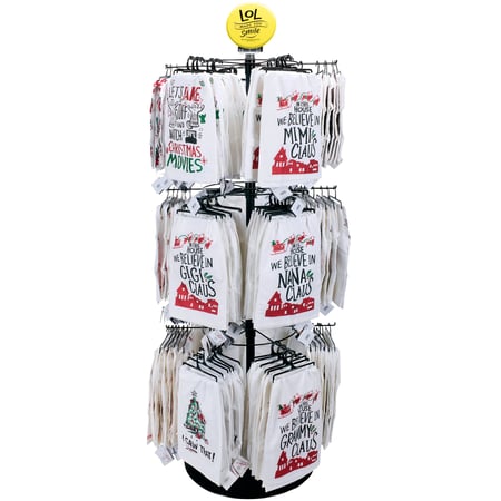 Finding it hard to choose? This curated quick pick kit guarantees you get the best designs and the best value all in one ready-to-display bundle! Save 20% on kitchen towels when you purchase display rack and all 18 designs. Our LOL Christmas Kitchen Towels Quick Pick Kit includes the items featured below.