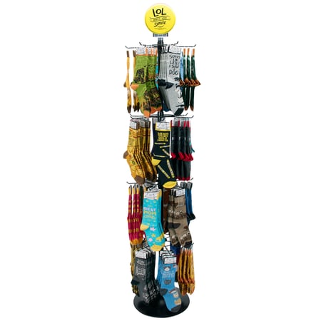 Finding it hard to choose? This curated quick pick kit guarantees you get the best designs and the best value all in one ready-to-display bundle! Save 20% on socks when you purchase display rack and all 24 designs. Our LOL I'd Everyday Socks Quick Pick Kit includes the items featured below.