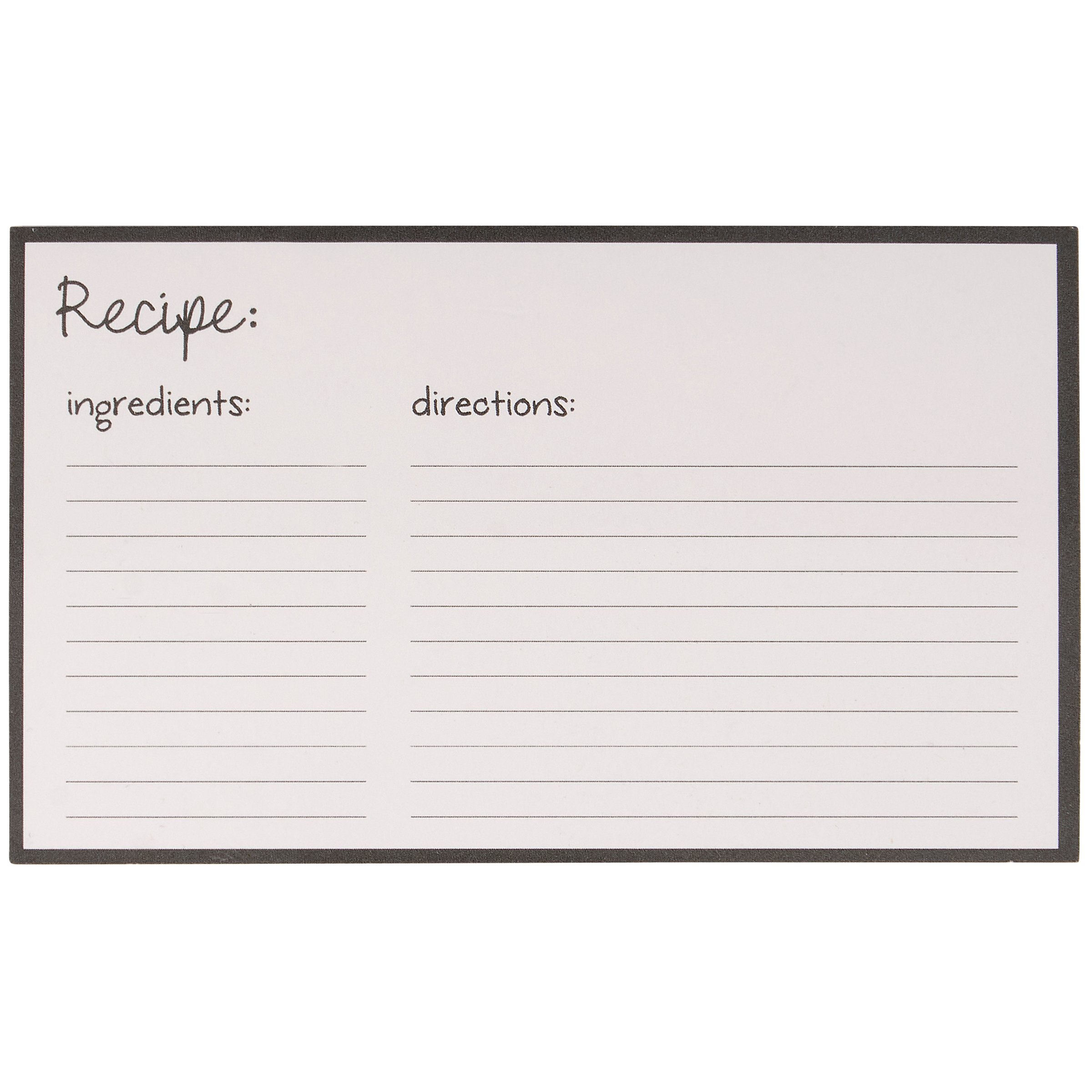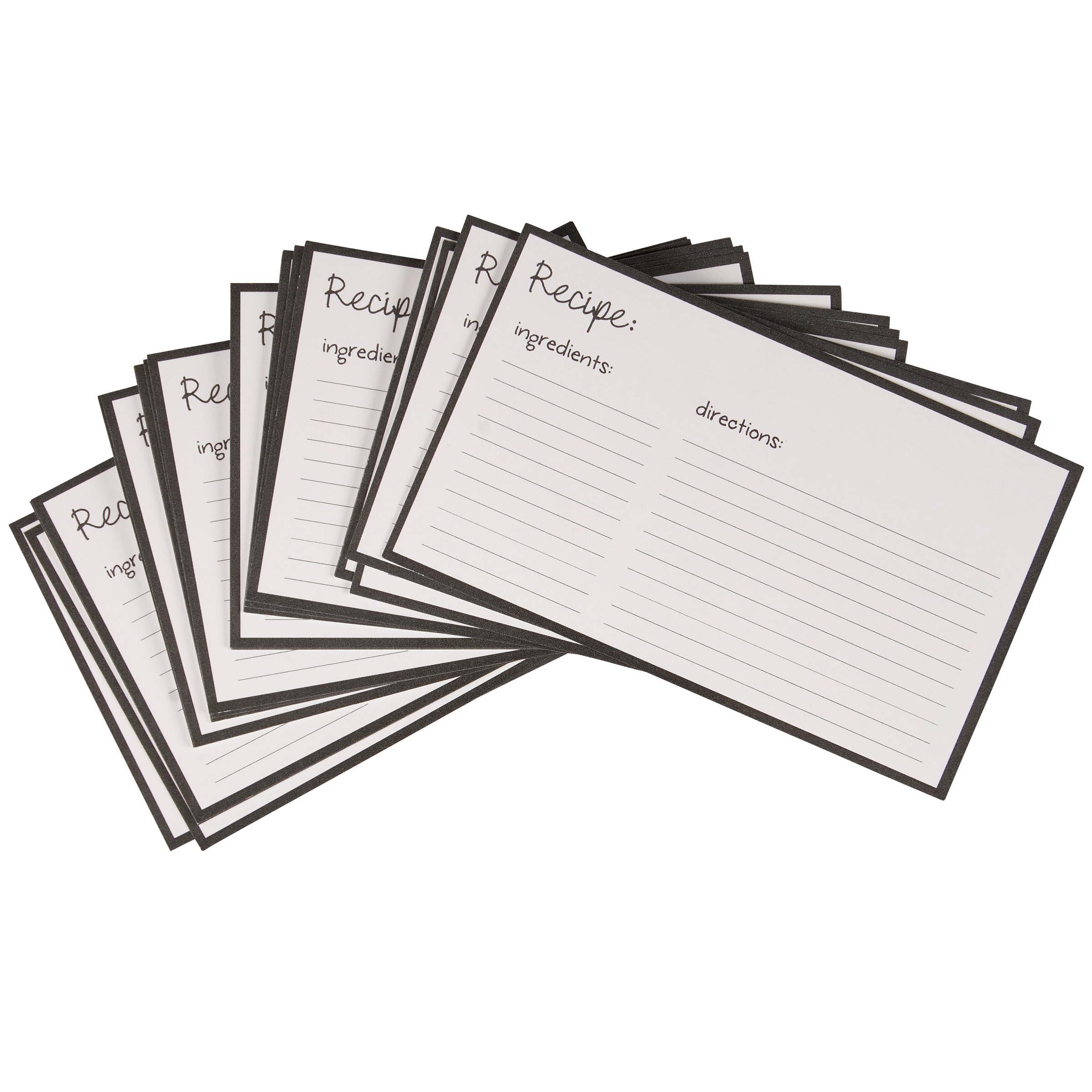 A set of paper recipe cards from our Home Collection displaying "Recipe:," "Ingredients:," and "Directions:" in a hand lettered style with space to customize each. Recipe cards feature a blank space to write recipe name with lined space for the ingredients and directions. Our Baking recipe cards come packaged with 30 cards in shrink wrap. A charming kitchen accessory perfect for everyday and seasonal gifting.