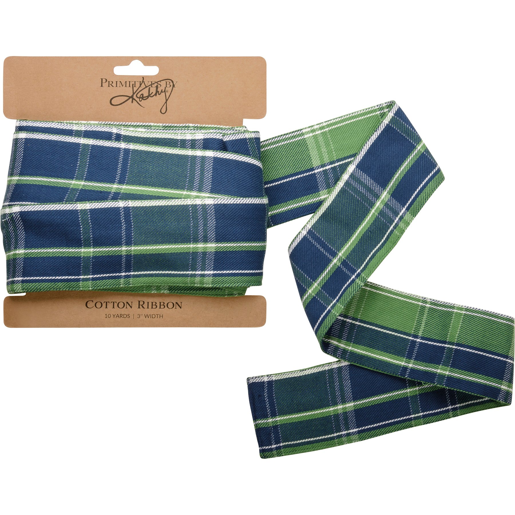 A cotton ribbon featuring an all-over holiday plaid pattern. Comes wrapped around a cardboard hanger to easily display on rack. Ribbon includes wire for added structure. 10 yards x 3".