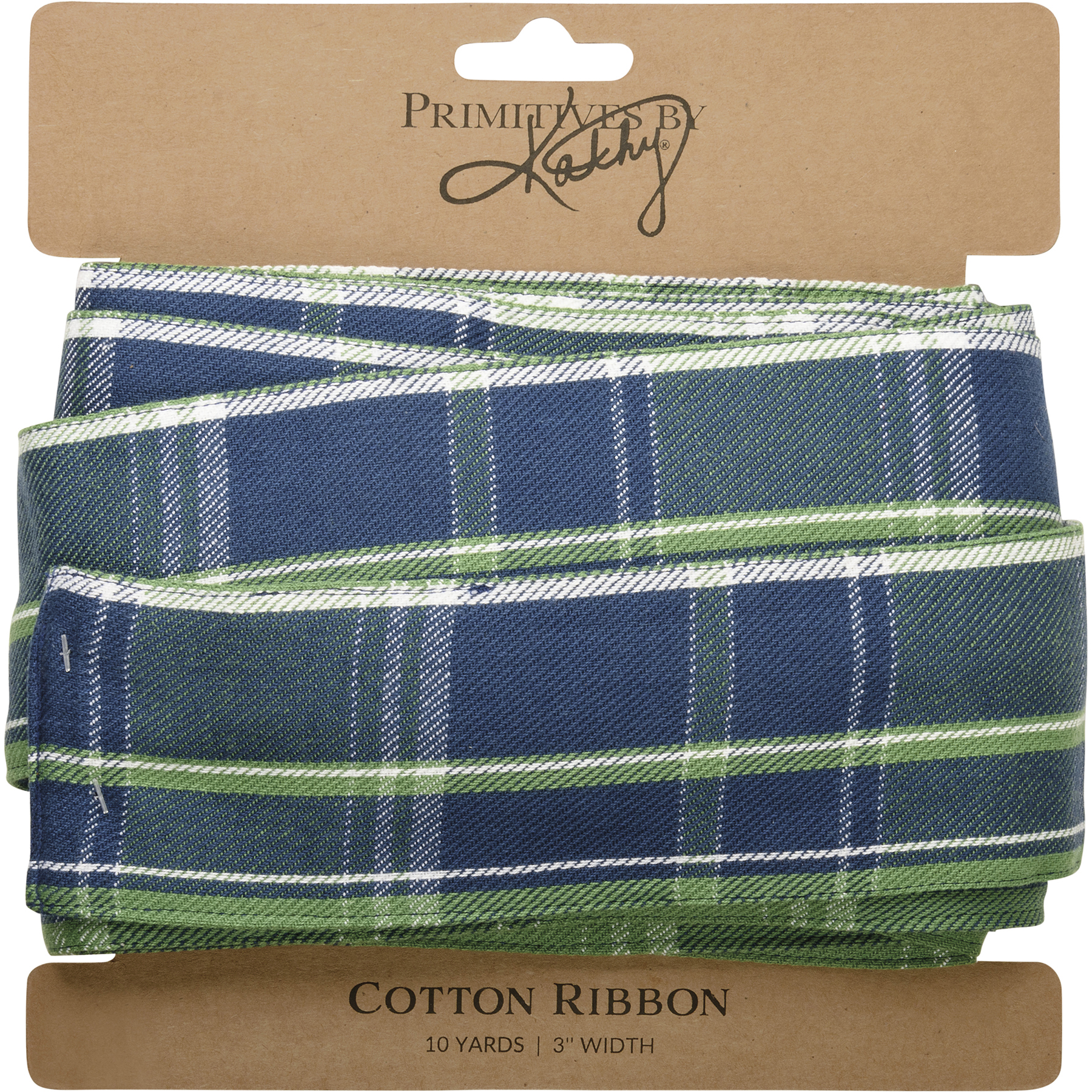 A cotton ribbon featuring an all-over holiday plaid pattern. Comes wrapped around a cardboard hanger to easily display on rack. Ribbon includes wire for added structure. 10 yards x 3".