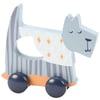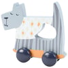 A fun wooden rolling toy from our Baby & Kids Collection displaying a cute pet inspired double-sided design replicated from original block print style art. Pet rolling toy features wooden scotty dog on wheels wearing clothes. Our Scotty Dog rolling toy is perfect for play with children 12 months or older and looks great on the shelf as child's room décor when not in use. A fun pet-themed gift for baby showers or everyday moments.