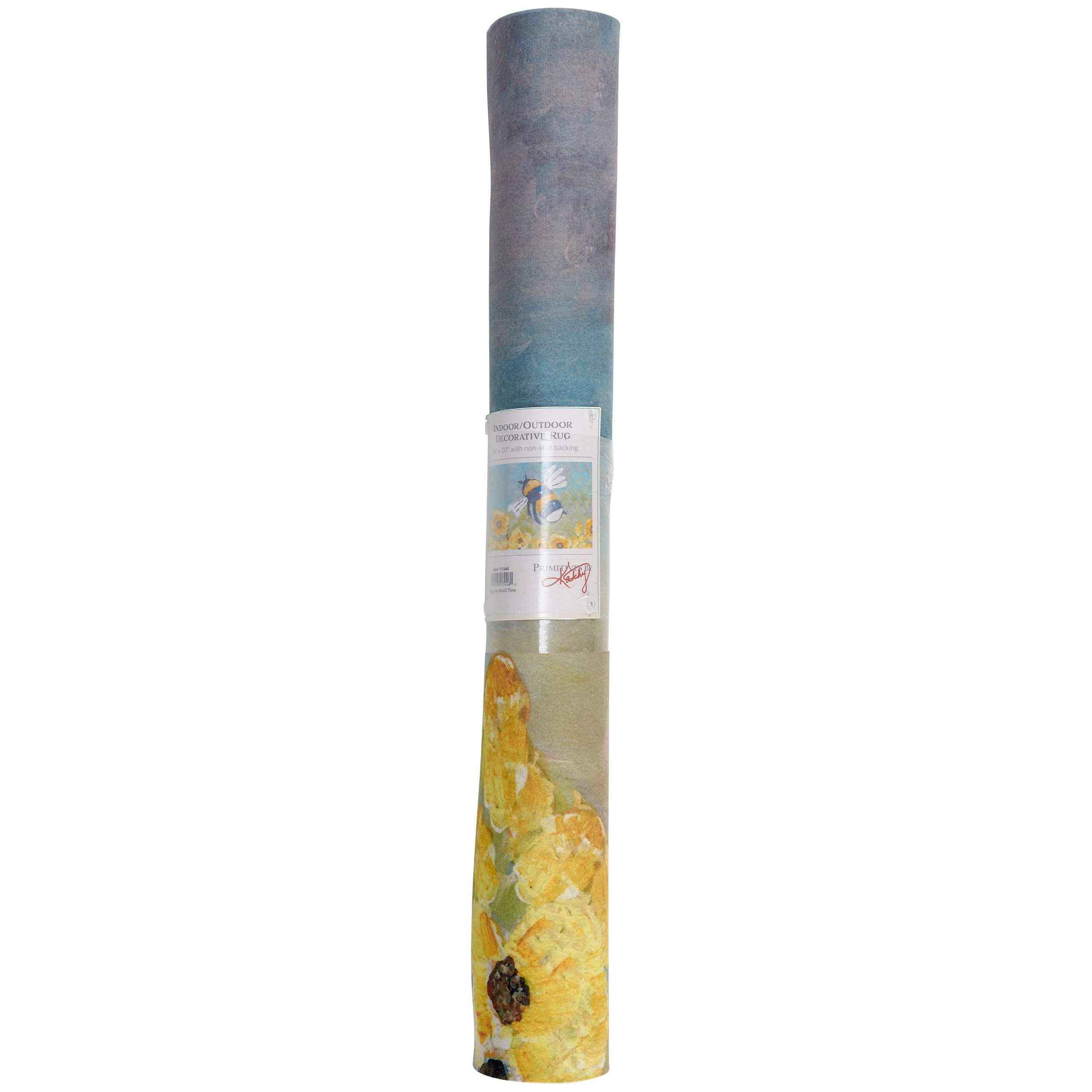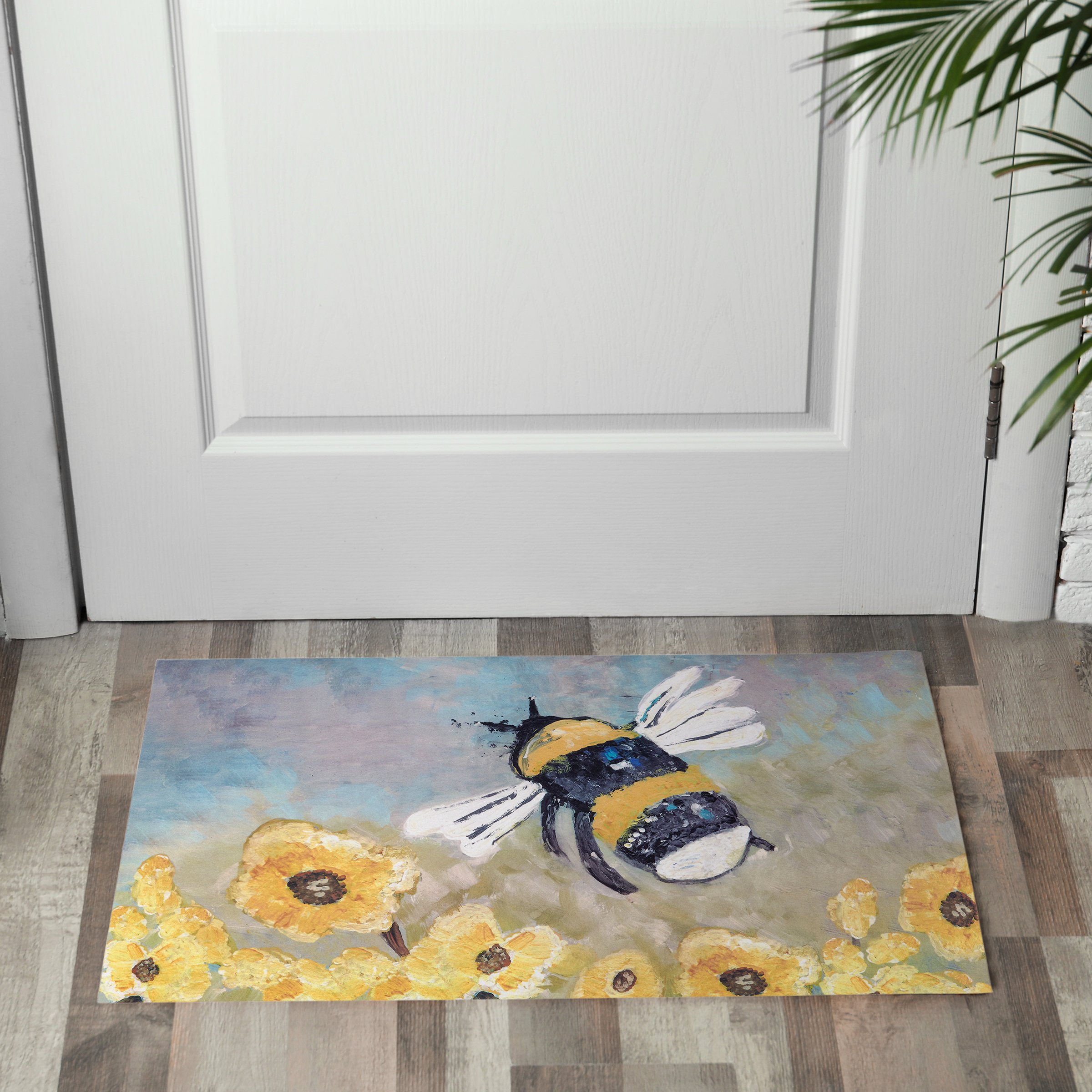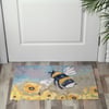A polyester rug from our Friendship Heart Gallery Collection displaying hand painted art of a bumblebee buzzing around yellow flowers. Design is replicated from original art created at the Friendship Heart Gallery in downtown Lancaster, PA that supports artists with intellectual disabilities and autism. Bumblebee rug can be used indoor or outdoor and features skid-resistant backing to help stay in place. Spot cleaning recommended. Our Bumblebee rug comes packaged neatly rolled with tag displaying full rug design. A bee-themed home accent that adds functional style.
