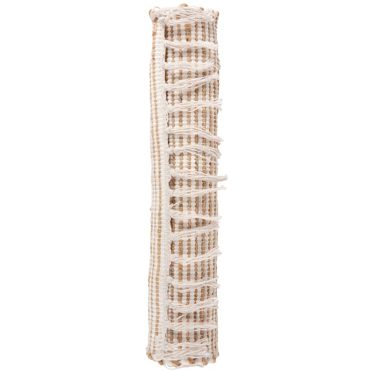 A cotton rug from our Home Collection displaying a neutral cream and brown woven design with tassels on the sides. Woven rug can be used indoor or covered outdoor and features skid-resistant backing to help stay in place. Spot cleaning recommended. Our Cream Woven rug comes packaged neatly rolled with hangtag. A neutral home accent that coordinates with a variety of home decor.