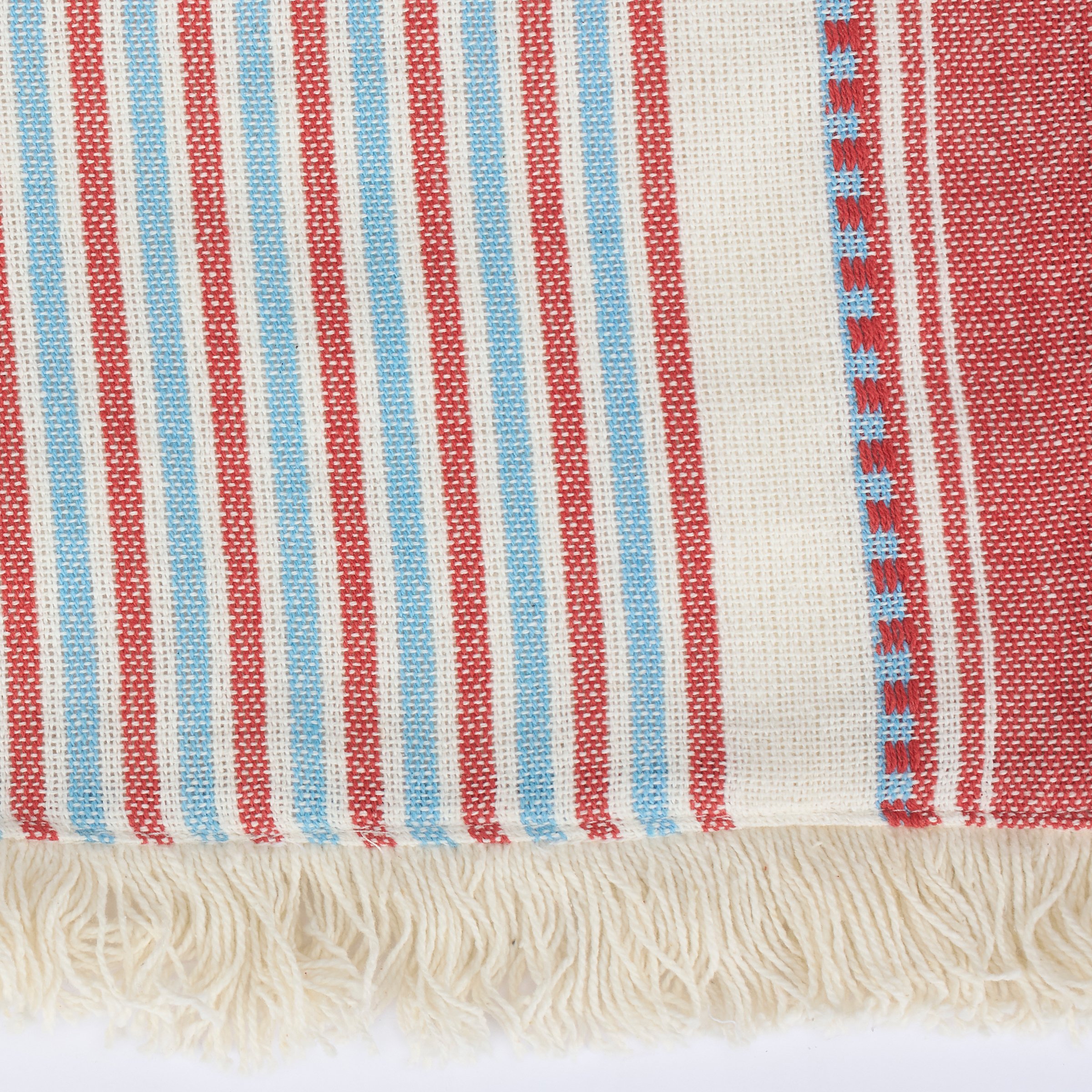 A cotton table runner from our Patriotic Collection featuring a woven red, white, and blue stripe design inspired by vintage Americana decor. Patriotic table runner can be used as table décor or as an accent to a home décor display and features 56 inches of length for plenty of coverage. Our Americana Stripe runner is conveniently machine-washable for easy cleaning. A patriotic home accent perfect for 4th of July and Memorial Day decorating or celebrating stars and stripes all year round.