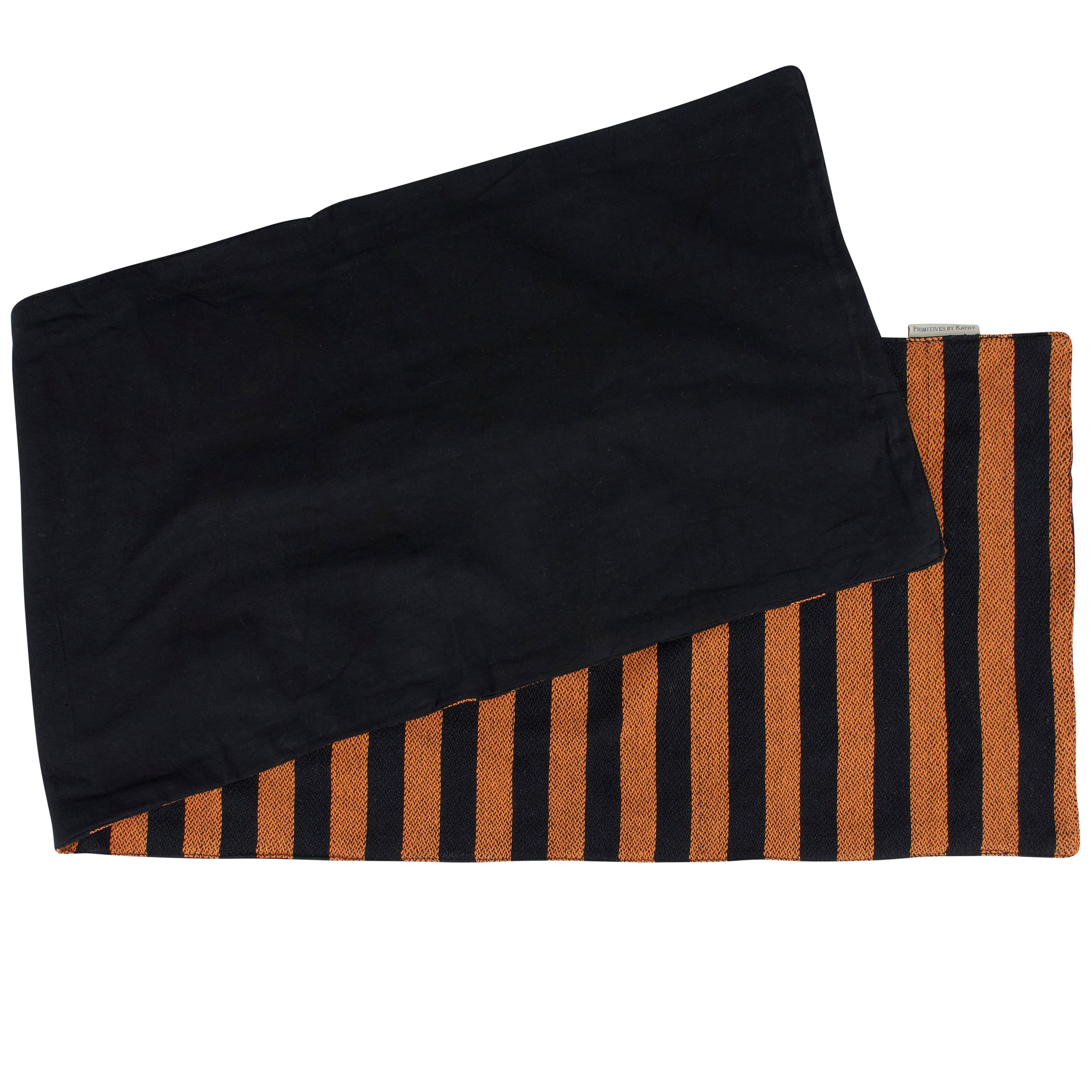 A cotton table runner from our Halloween Collection displaying a muted orange and black stripe pattern that coordinates well with Halloween home decor and tablescapes. Halloween runner can be used as table décor or as an accent to a seasonal home décor display. Our Halloween Stripe table runner is conveniently machine washable for easy cleaning. Seasonal runner features 56 inches of length for plenty of coverage. A Halloween home accent with a variety of seasonal display options.