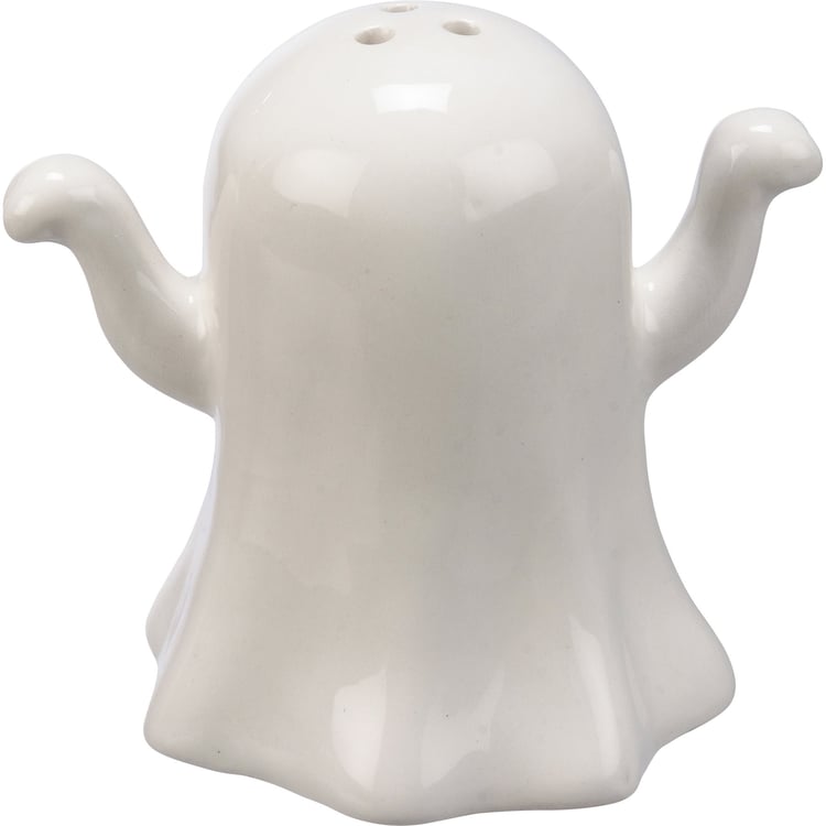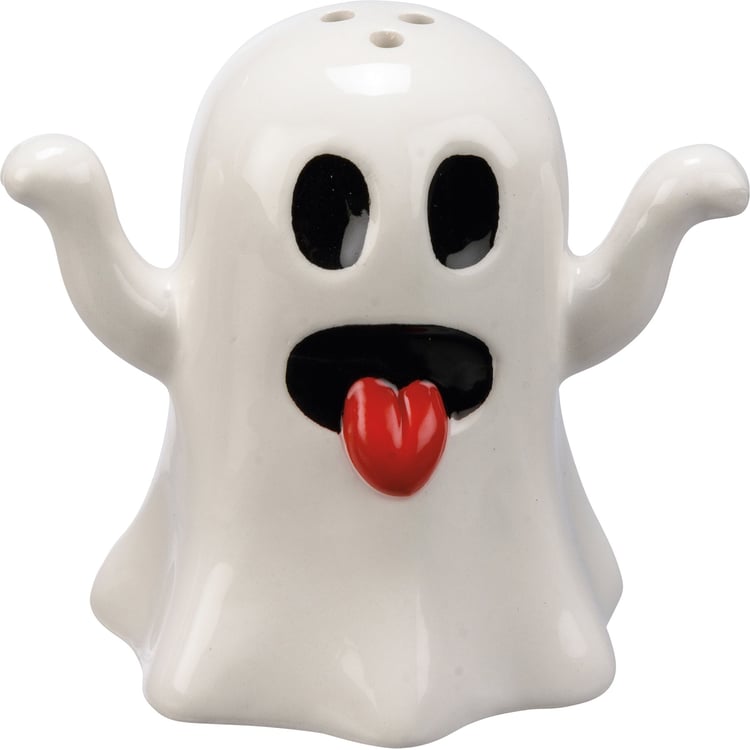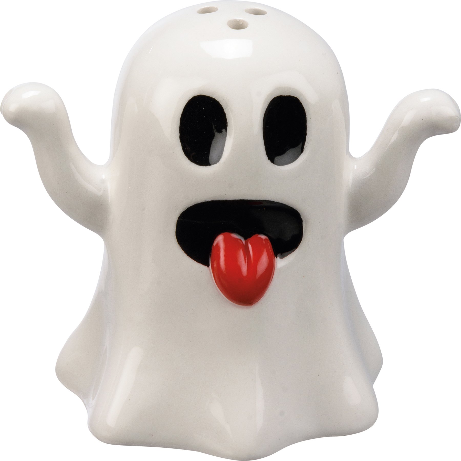 Perfect for Halloween, this set of two ceramic ghost salt and pepper shakers features dimensional ghost shapes. Includes plastic stoppers. Our Ghost Salt and Pepper Shakers are hand wash only.