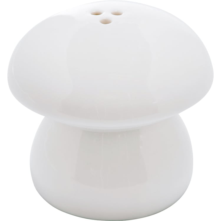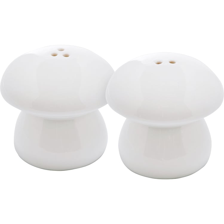 A set of ceramic Mushroom salt and pepper shakers from our Cottagecore Collection featuring a simple white mushroom design for each. Shakers include unique openings to tell them apart and plastic stoppers for easy refilling. Our Mushroom salt and pepper shakers are hand wash only.