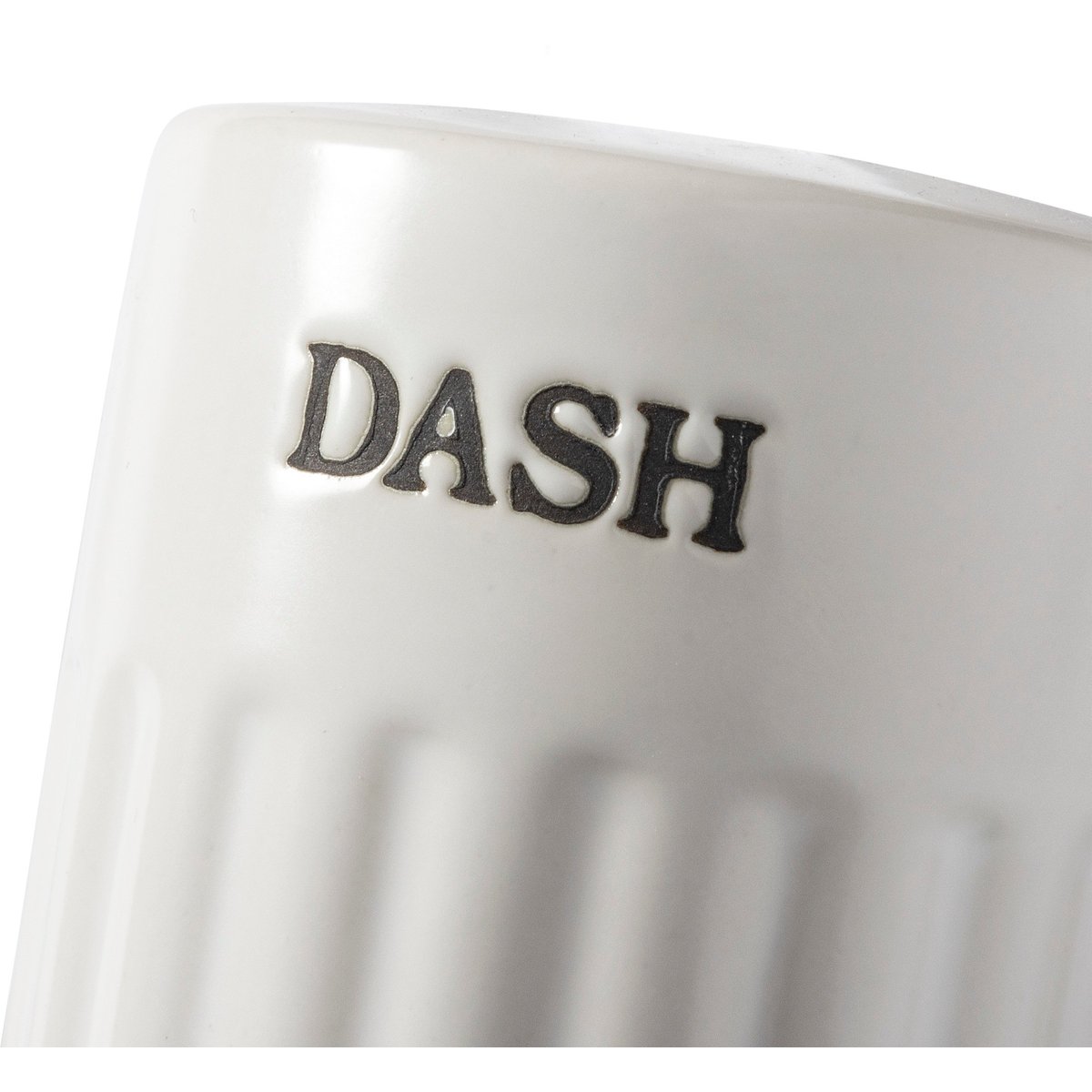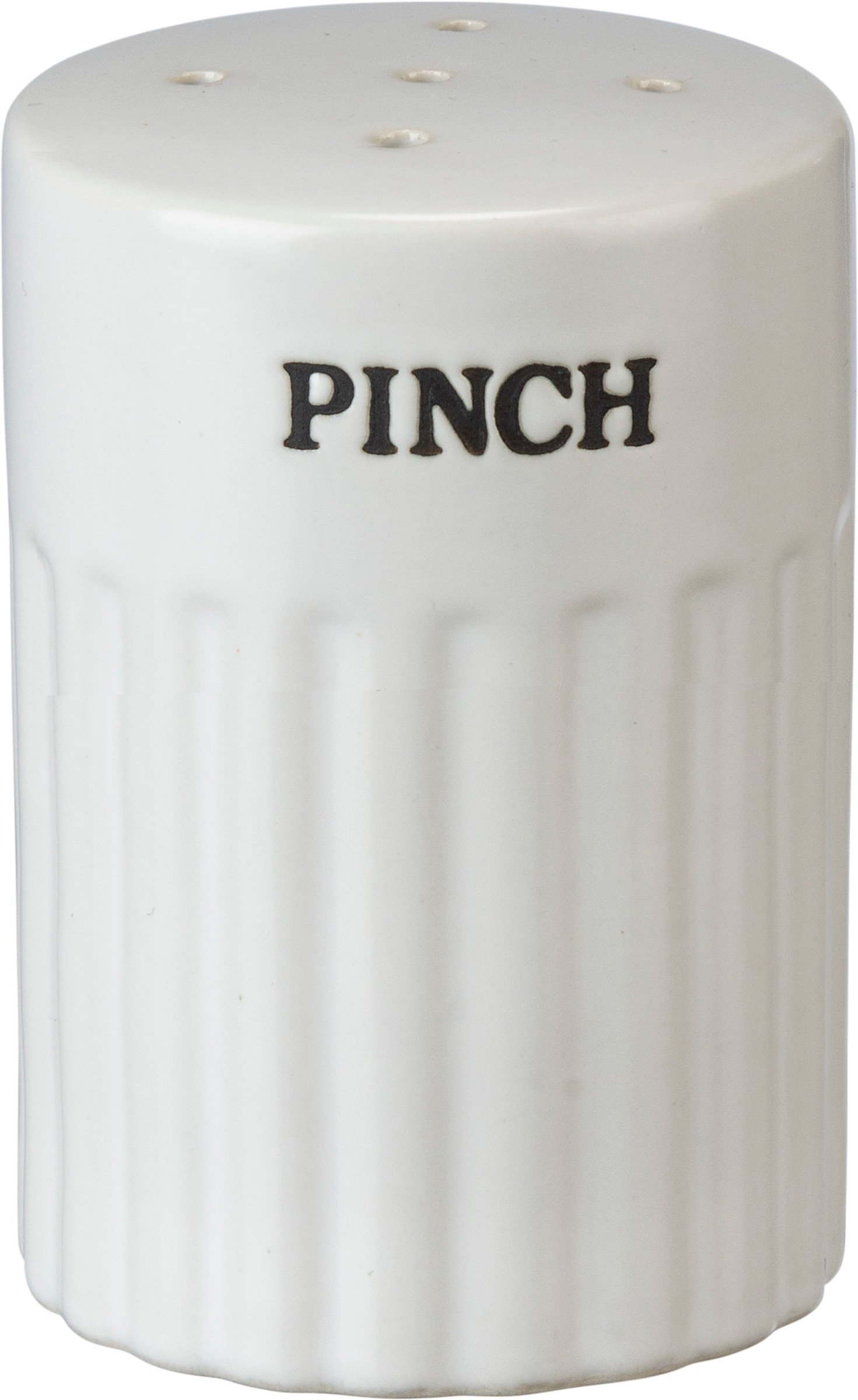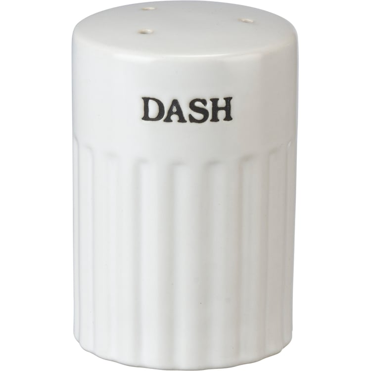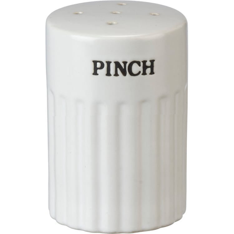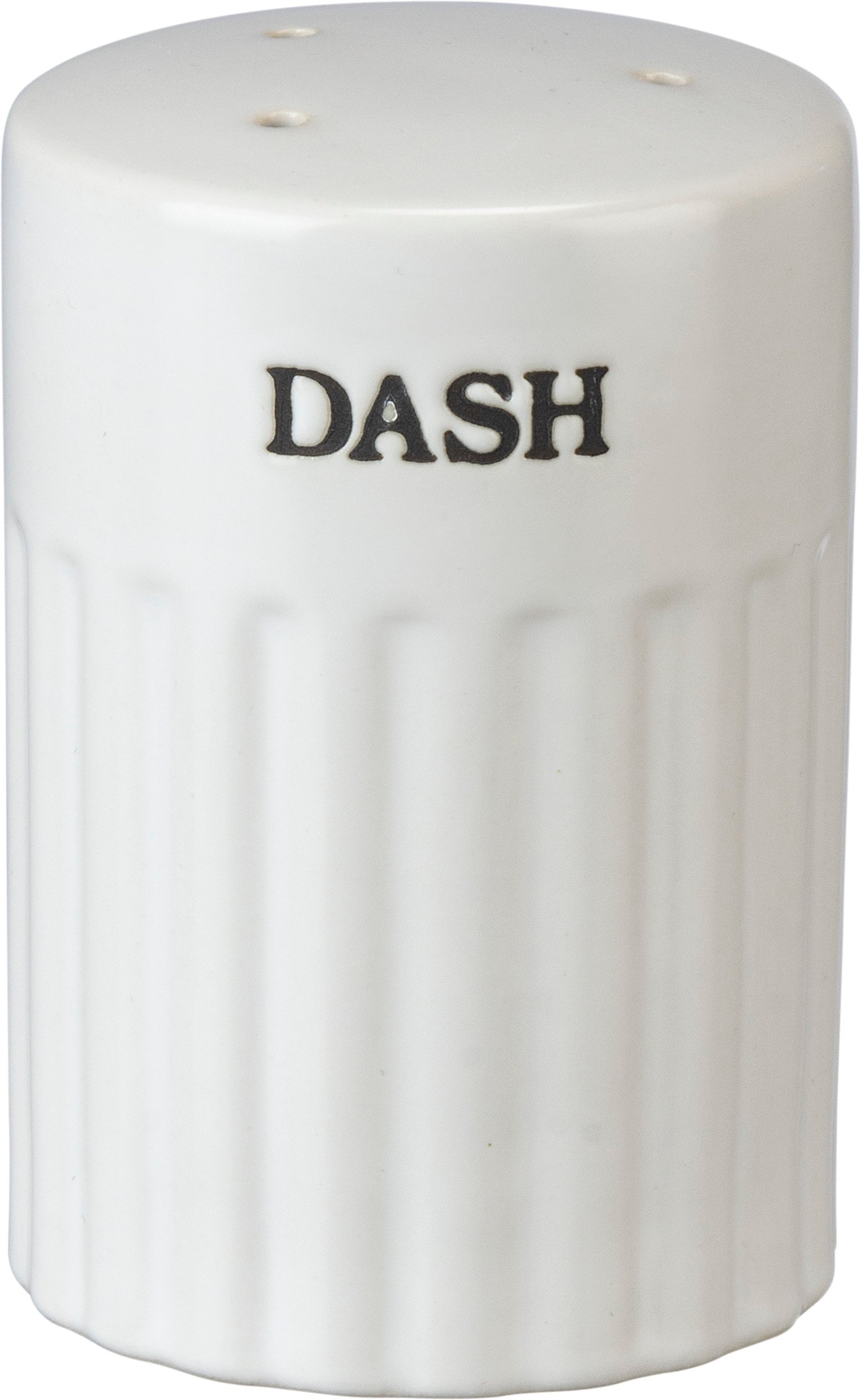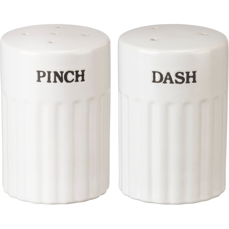 A set of white stoneware salt and pepper shakers from our Tabletop Collection lending debossed "Pinch" and "Dash" sentiments, respectively. Features ribbed texture and slate gray text Microwave, oven, dishwasher and food safe. The Pinch Dash salt and pepper shakers makes a perfect addition to a farmhouse aesthetic and coordinates well with other pieces in the collection!