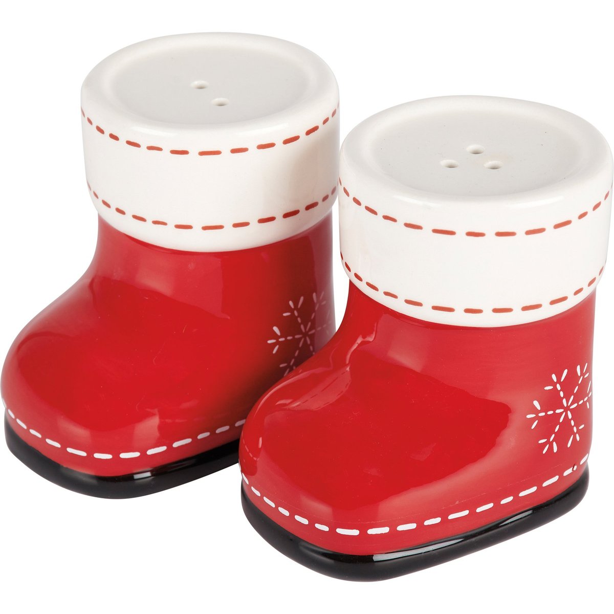 A set of stoneware salt and pepper shakers from our Christmas Collection featuring a cute red winter boots design with snowflake accents. Shakers include unique openings to tell them apart and plastic stoppers for easy refilling. Our Red Boots salt and pepper shakers are dishwasher and food safe for easy use. A fun and functional seasonal home accent.