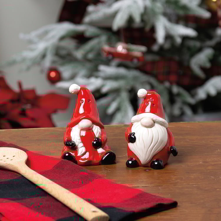 Perfect for Christmas, this set of two ceramic salt and pepper shakers from our Christmas Collection feature dimensional Santa and gnome shapes. Includes plastic stoppers. Our Santa Salt and Pepper Shakers are hand wash only.