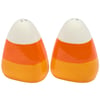 A set of ceramic salt and pepper shakers from our Halloween Collection displaying fun matching candy corn designs with glaze finish and painted details. Our Candy Corn salt and pepper shakers include unique openings to tell them apart as well as plastic stoppers for easy refilling and cleaning. Hand wash only. A set of fun vintage tabletop accessories perfect for Halloween tablescapes.