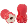 A set of porcelain salt and pepper shakers from our Beach Collection displaying octopus designs with red glaze finish. Our Octopus salt and pepper shakers include unique openings to tell them apart as well as plastic stoppers for easy refilling and cleaning. Hand wash only. A fun set of tabletop accessories perfect for beach-themed tablescapes.