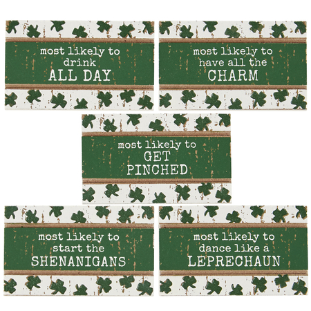 It’s your lucky day! Shamrocks shower our Primitives by Kathy St. Patrick’s Day décor collection of wholesale seasonal home décor. Explore everything from the traditional green hues on our garden flags, kitchen towels, and home décor that spring the feeling of celebration to the more rustic sentiment focused designs that wish you all the luck. Our St. Patrick’s Day home décor features natural wood and distressed details combined with fun and festive sentiments. Effortlessly add a seasonal green touch to any space with these wholesale seasonal home accents. For a traditional St. Patrick’s Day feel, shop our St. Patrick's Day décor featuring festive sentiments paired with a shower of shamrocks in seasonal green and white. Our shamrock covered home décor includes box signs, kitchen towels, and ornaments. Find all of our wholesale seasonal décor and more in our Primitives by Kathy St. Patrick’s Day Collection.