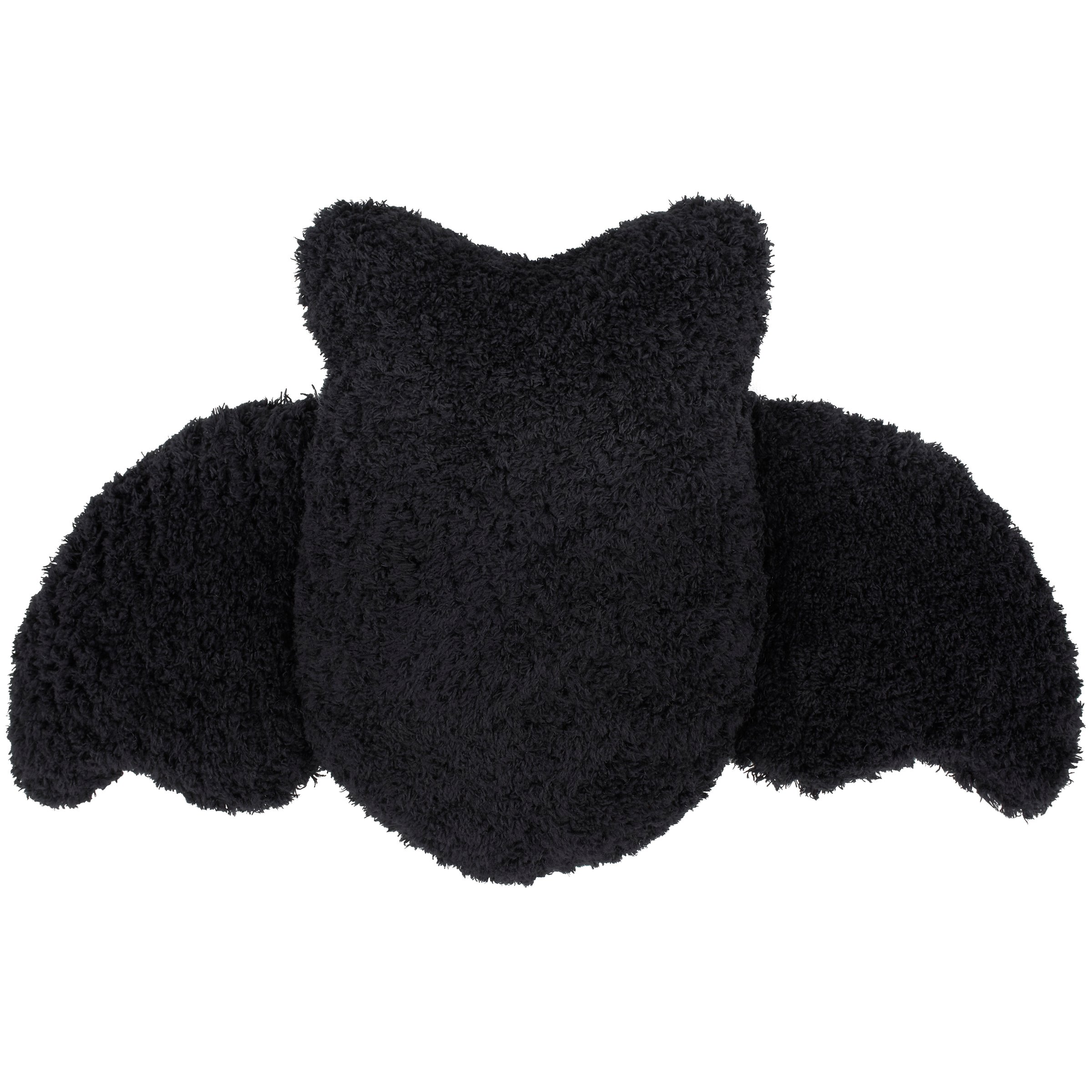 A decorative pillow from our Halloween Collection in the shape of a cute black bat character. Our Bat shaped pillow features a plush texture to create the look and feel of bat fur with embroidered face and wing details. This Halloween shaped pillow contains polyester filling and is for decorative use only; not a toy. A fun Halloween home accent perfect for adding seasonal style to any space.