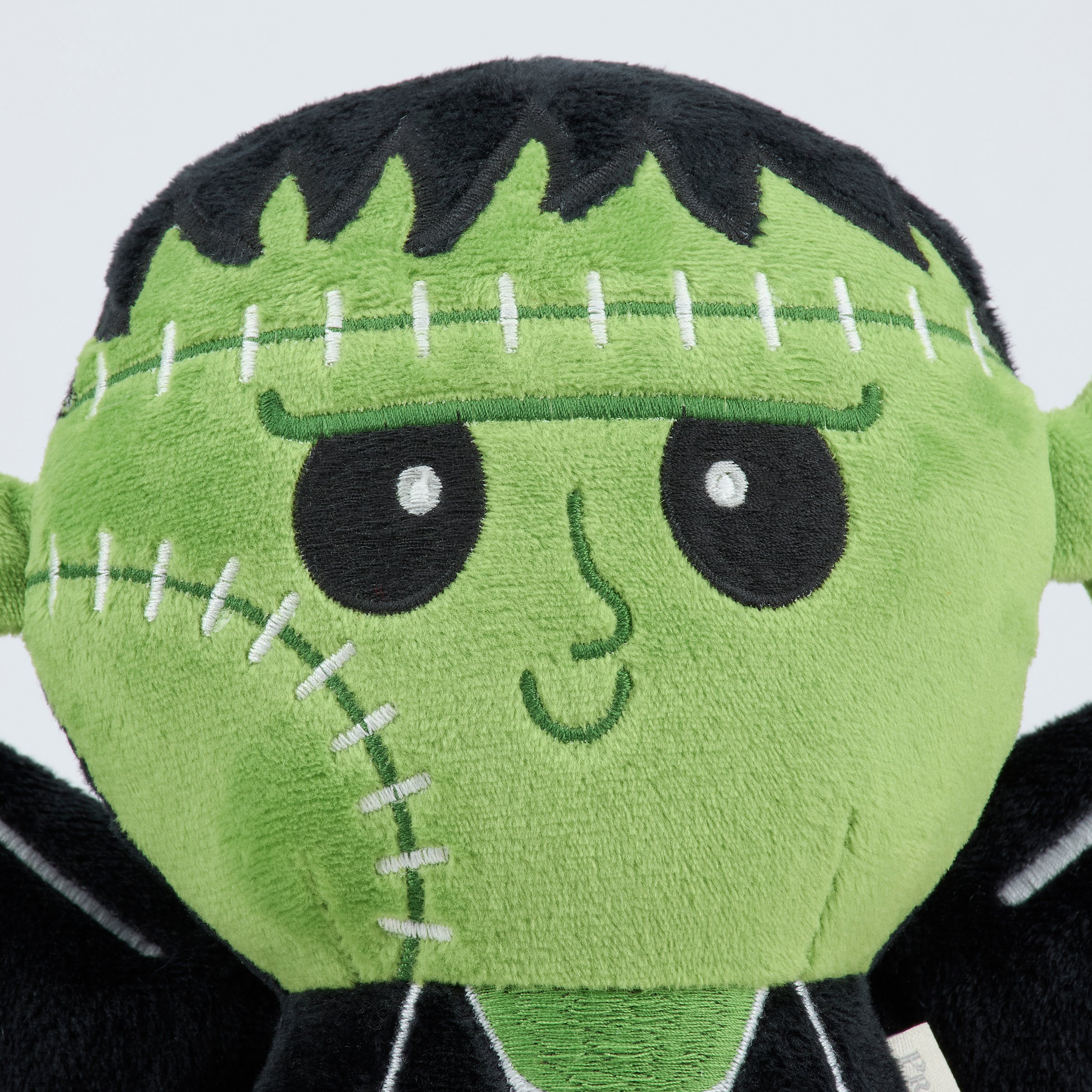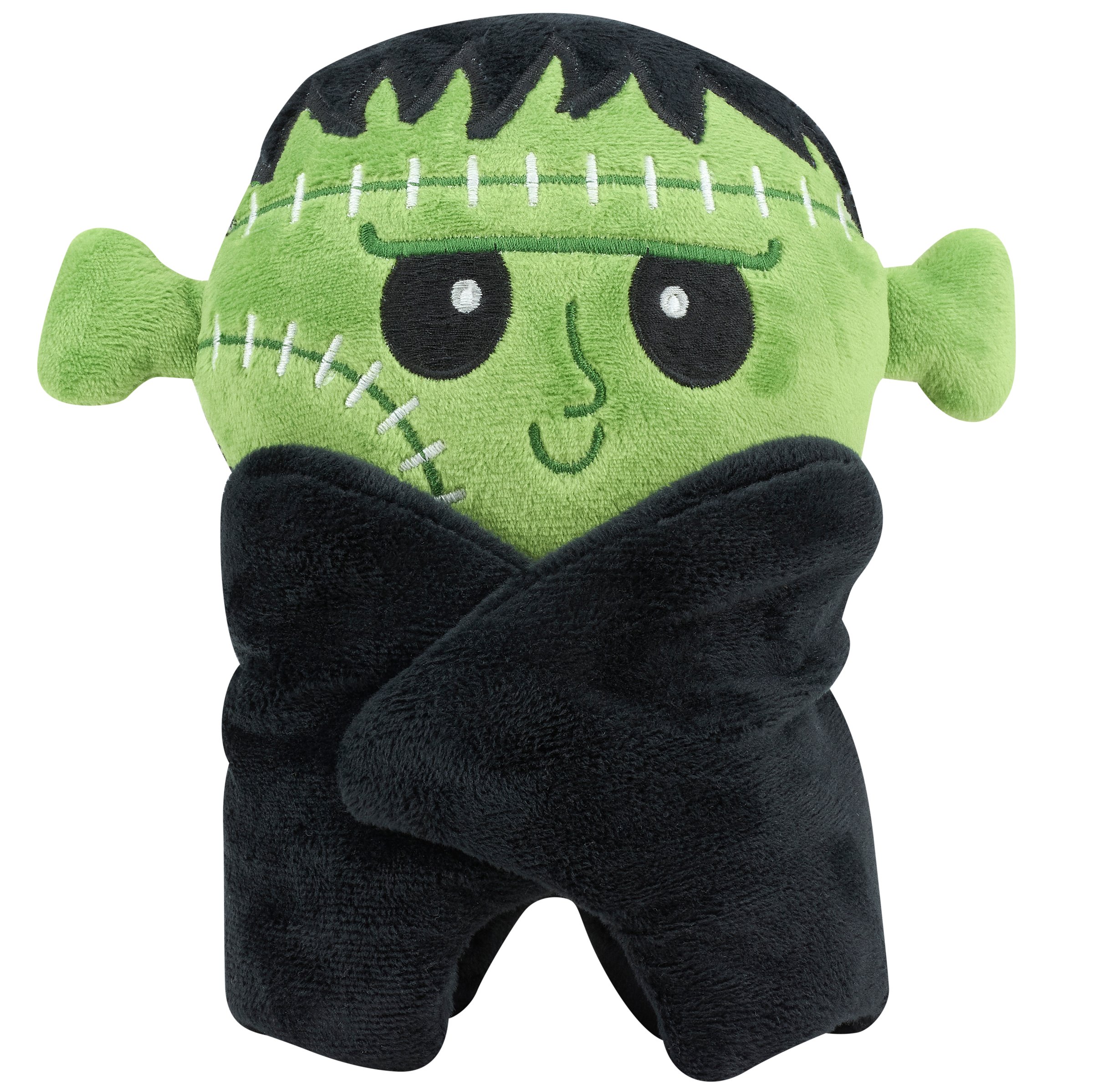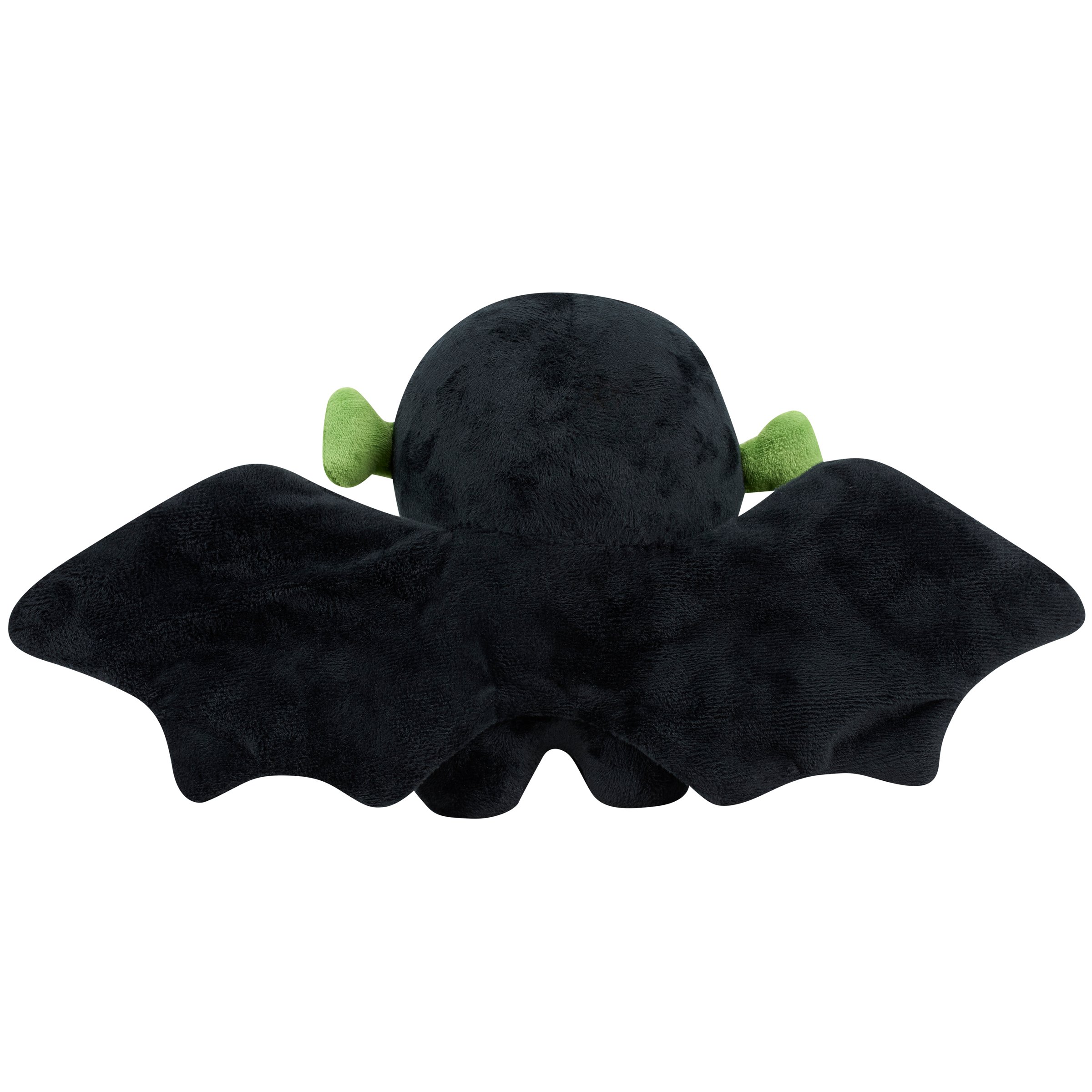 A decorative pillow from our Halloween Collection in the shape of a cute Frankenstein monster with bat wings. Our Frankenbat shaped pillow features embroidered details and wire in the wings to create fun poses. This Halloween shaped pillow contains polyester filling and is for decorative use only; not a toy. A whimsical Halloween home accent perfect for adding seasonal style to any space.