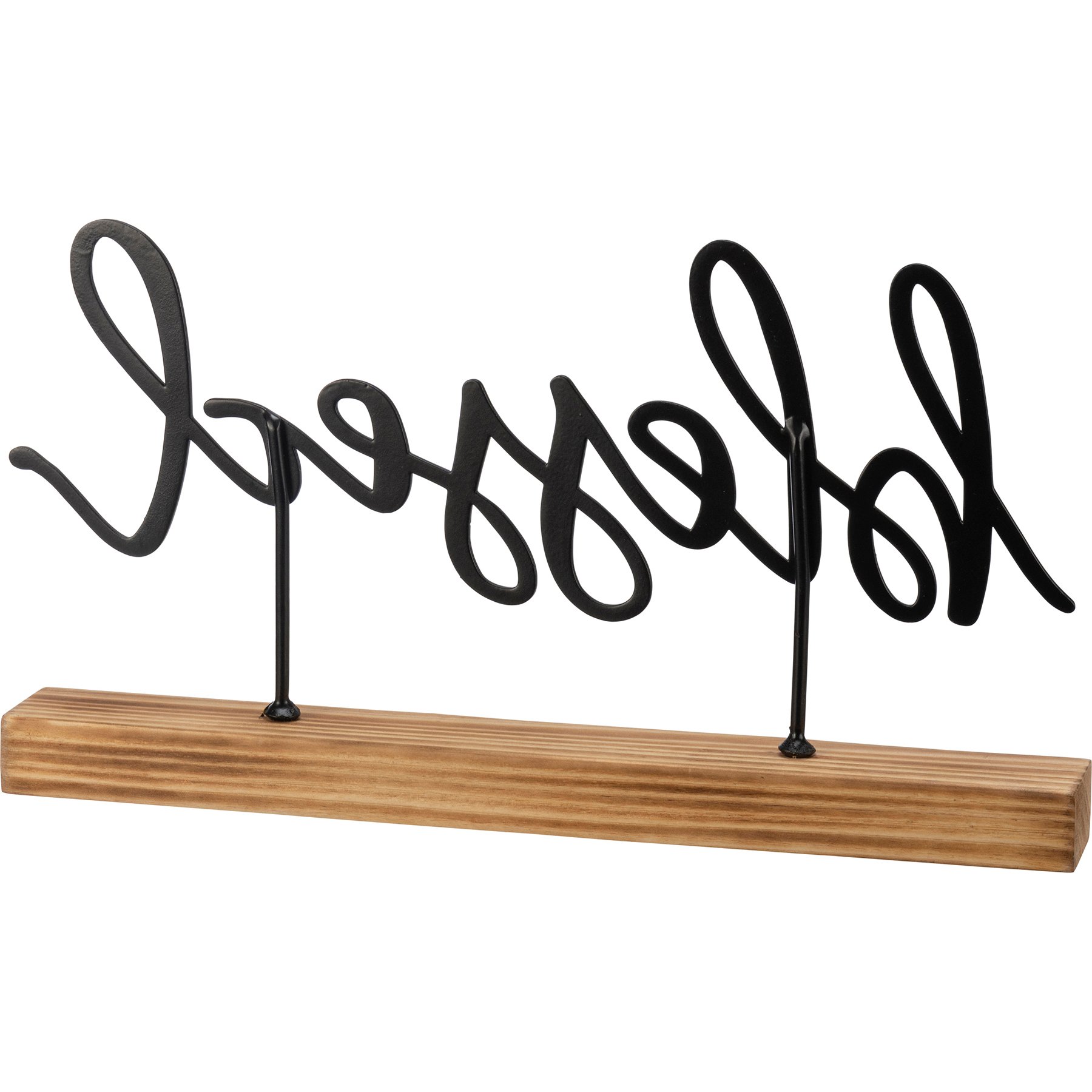 A decorative sitter from our Hand Illustrated Collection featuring a metal sign boasting an inspirational word standing on a natural wood base. Hand lettered "Blessed" sentiment is perfect for everyday and seasonal use. Our Blessed metal sign can free-stand alone.