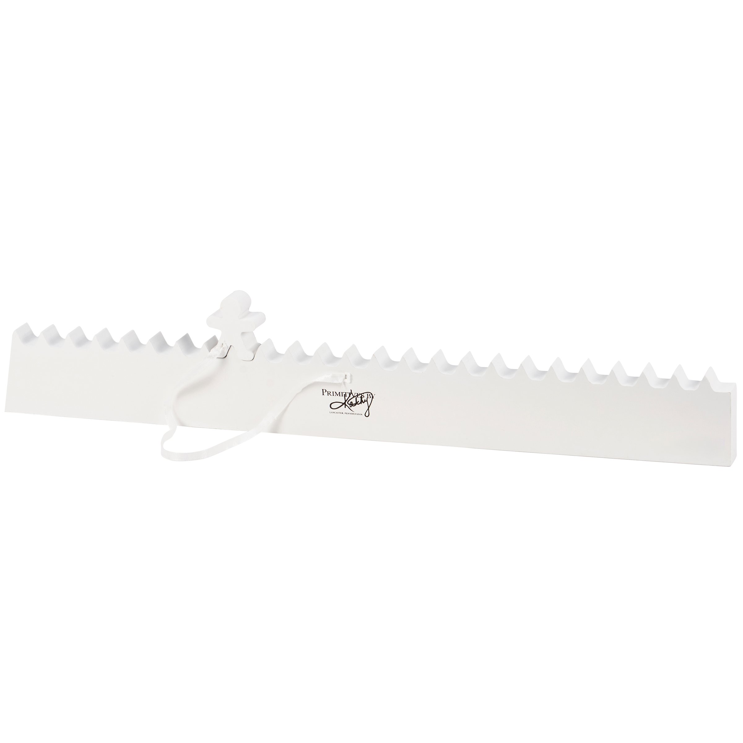 A decorative sitter from our Christmas Collection featuring a gingerbread-themed Christmas countdown design. Sitter displays cream color with natural wood for designs. Christmas countdown includes wooden gingerbread man attached via ribbon that can be used to sit on grooves above days 1-25 with holiday sentiment that reads "Christmas Is Coming." Our Gingerbread Christmas countdown can free-stand on flat surface for display. A fun gingerbread-themed home accent that can be easily displayed in any home or work space to build excitement for the holidays.