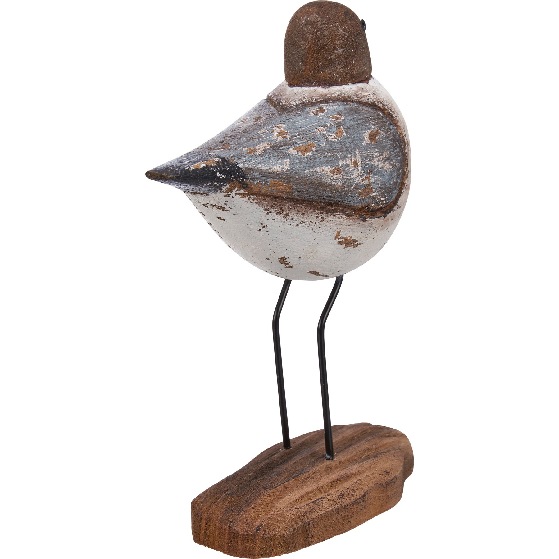 A large decorative sitter from our Beach Collection featuring a sandpiper bird design made of natural wood with distressed details. Bird stands on driftwood style base. Our Sandpiper large sitter is designed to free-stand on any flat surface. A primitive option for beach-themed everyday home décor.